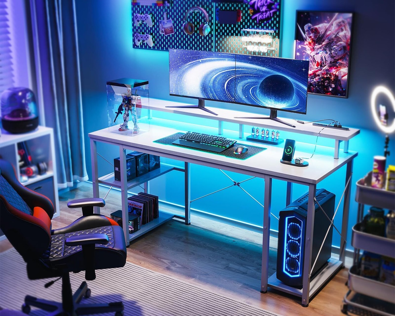 【RGBバーライト付き、お部屋の雰囲気が変わる】ゲーム机には10段階調色・9段階調光のLEDバーライトを搭載しており、気分やシーンに合わせてカラーを切り替えることができる。頑丈で長持ちやすい。臨場感にあふれるゲーム雰囲気だけではなく、温かみのある学習・仕事環境も作り出せる。