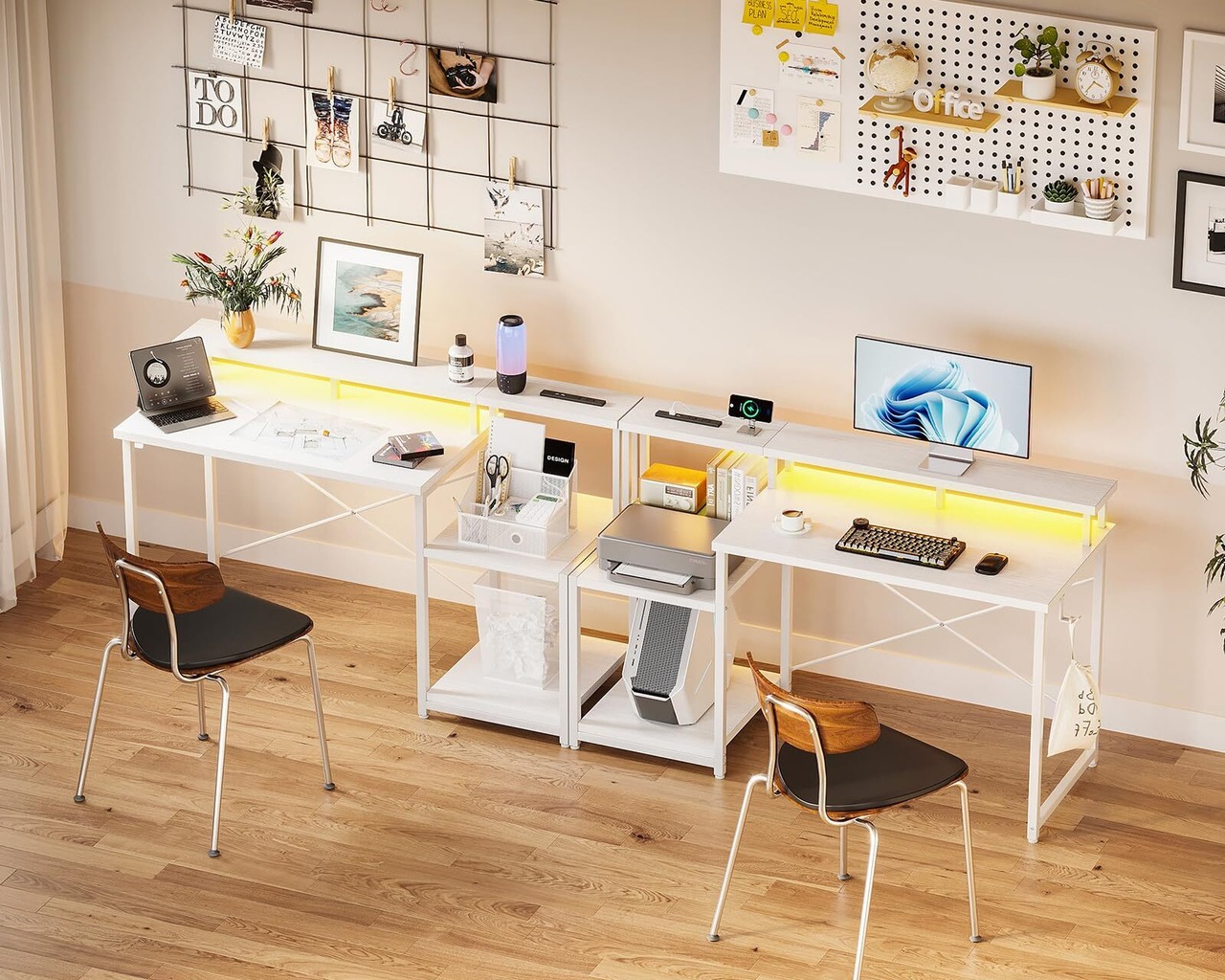 AODK デスク パソコンデスク ゲーミングデスク ラック&コンセント付き 机 pcデスク 幅120cm モニター台&プリンター台付き 勉強机 桌子 LEDライト付き ゲーム/在宅ワーク/オフィス用 左右入れ替え対応 ホワイト