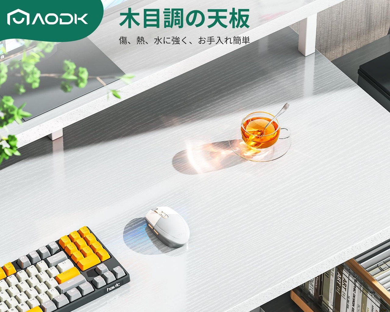 【革新的な収納設計、たっぷり入る収納力】収納ラック+超長い机上台+フックが備わっており、多サイズの物の収納に適する。ラックの部分は左右どちらにも設置OK。棚板が2段あり、置くものに合わせて上段の棚板の位置が調節可能。上段はプリンター台として、下段はCPUスタンドとして使用することをお勧めいたします。デスク周りをちゃんと整頓いただけ、お部屋がスッキリ。