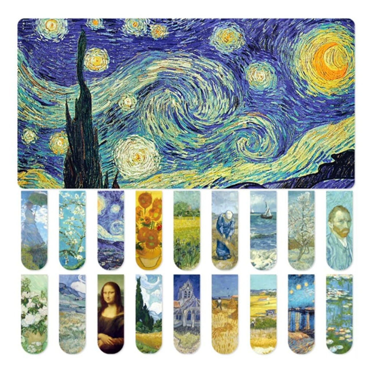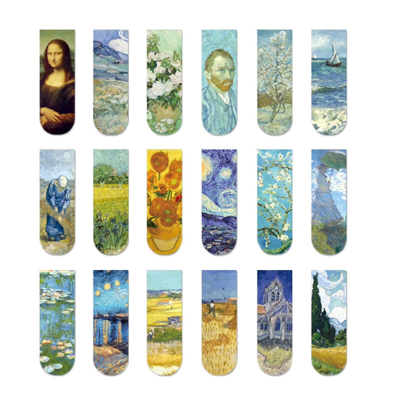 YUWENW 磁気しおり ブックマーク マグネット式 しおり 18個セット マグネット付き 磁気ブックマーク 磁石 クリップ 絵画風 モネ ゴッホ レトロ調 花柄 レトロ調 読書用 教師 学生 芸術デザイン 学習支援