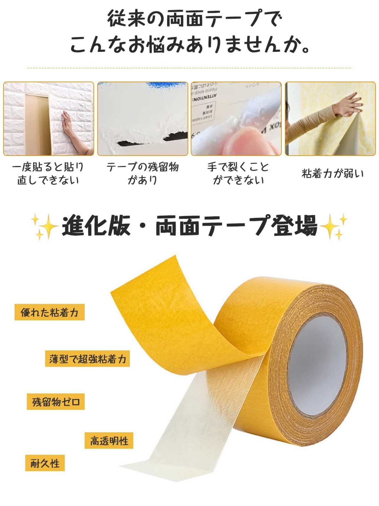 超強力 両面テープ 極 粘着テープ 剥がせる ガラス繊維入り 薄型 メッシュ 【接着しにくい素材も対応】 透明 防水 張り替え あと残らない ファイバー 便利 両面粘着布ダクト パンチラ防止 (幅:5cm 長さ:20m)