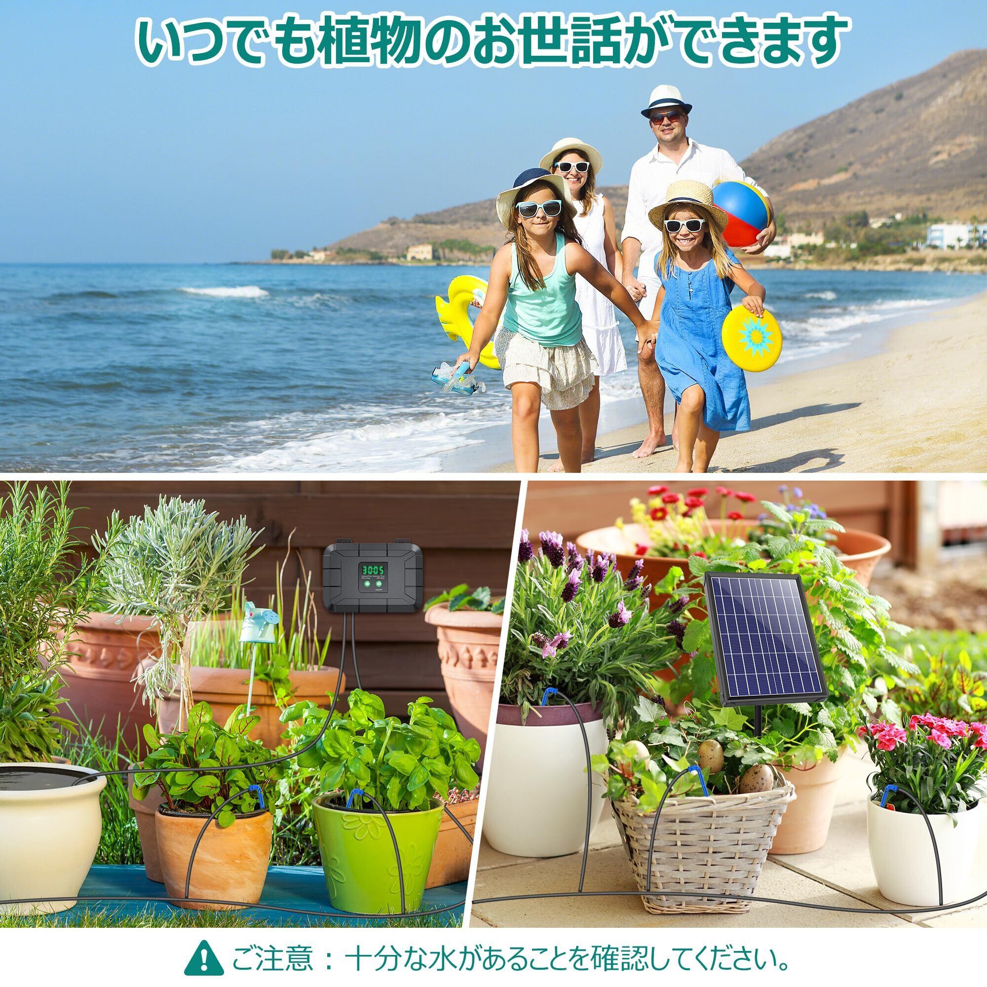 電源不要・メンテナンス簡単:ソーラー充電式のため、コンセントや配線が不要。水タンクの残量確認だけでOK、面倒な水やり作業から解放されます。 忙しい方やガーデニング初心者に最適!水やり忘れや過剰灌漑を防ぎ、植物を最適な環境で育てます。