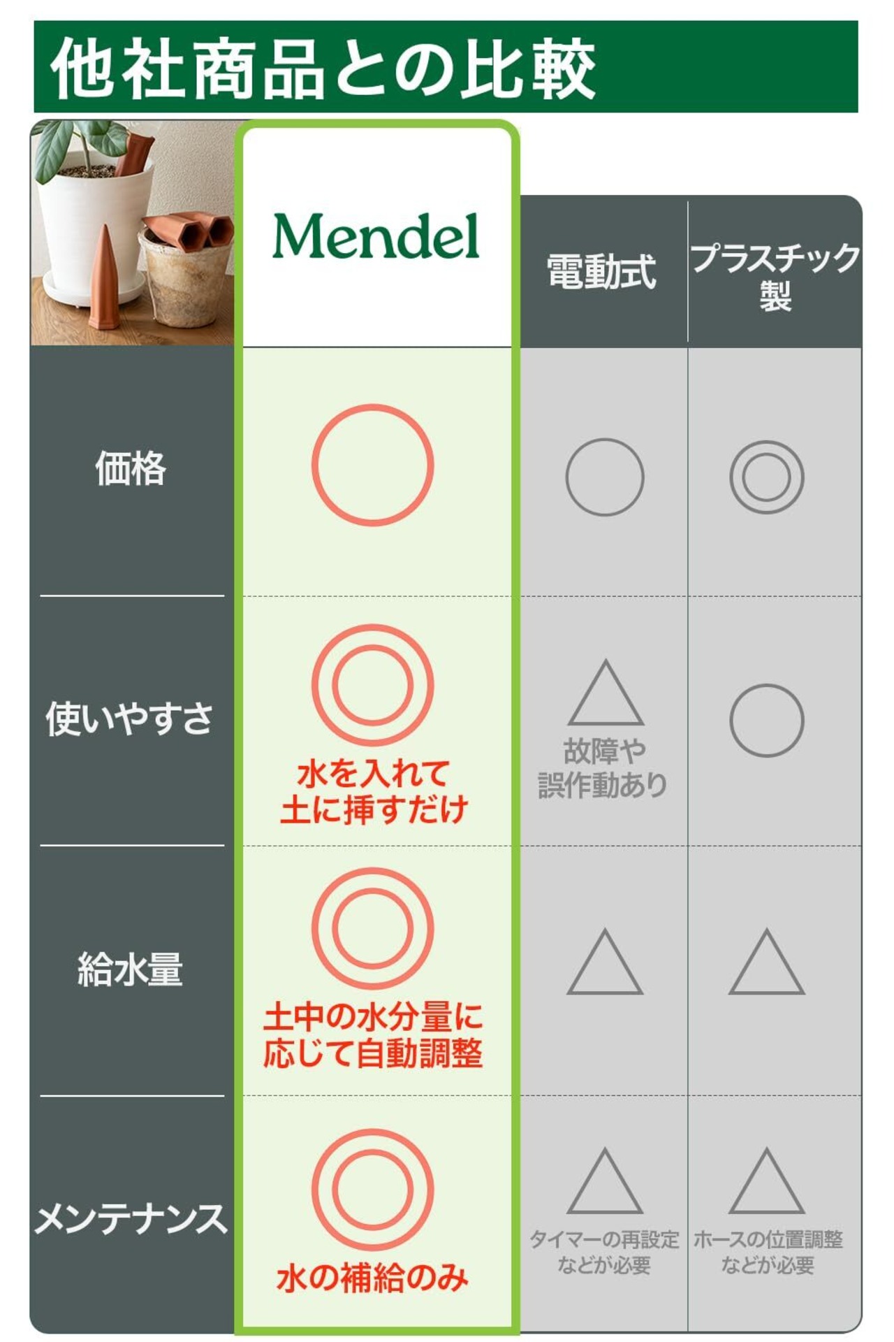 Mendel 自動水やり器 留守中も安心 自動給水器 植物 自動水やり 陶器 7-15号鉢用 4本入