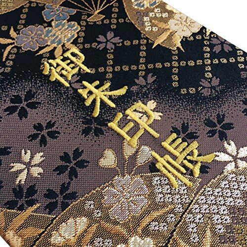 千糸繍院 御朱印帳L【煤扇桜】西陣織 金襴装丁/刺繍文字 蛇腹式48ページ 大判(金色刺繍文字/生成り本文)