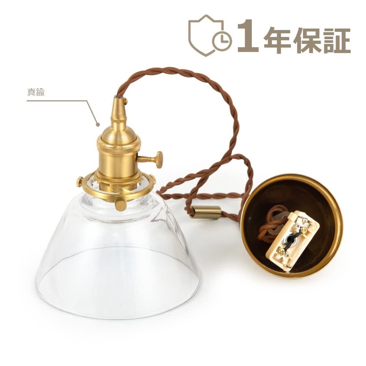 智光電気 真鍮 小型 ペンダントライト- クリアー ガラス シェード おしゃれ 天井 照明器具 吊り下げ 間接照明 リビング ダイニング 食卓 玄関 引掛けシーリング E26口金(スイッチ付)
