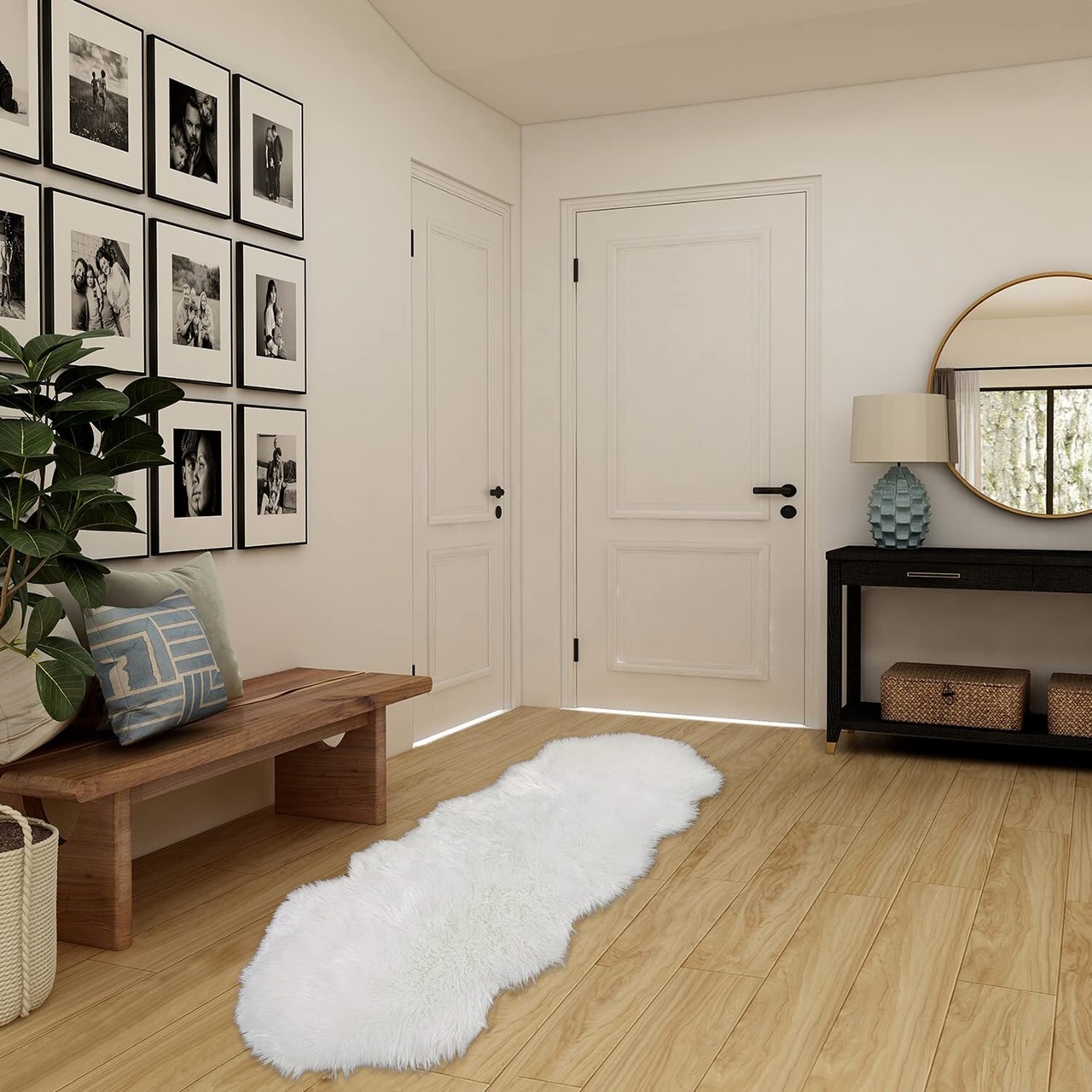 HAOCOO ムートンラグ フェイクファー 洗える ソファーかけラグ 北欧 厚手 ふんわり 柔らかい ラグマット 滑り止め 玄関マット 60*150cm 足元マット キャンプ イス 敷き シャギーラグ ホワイト