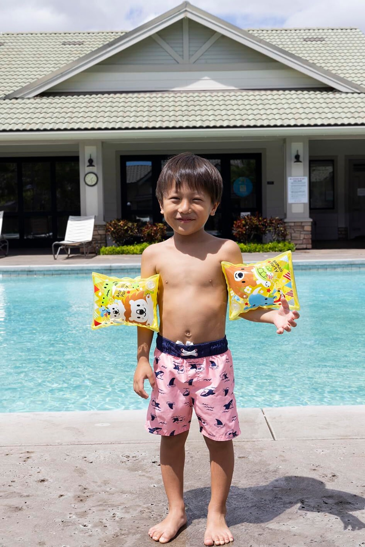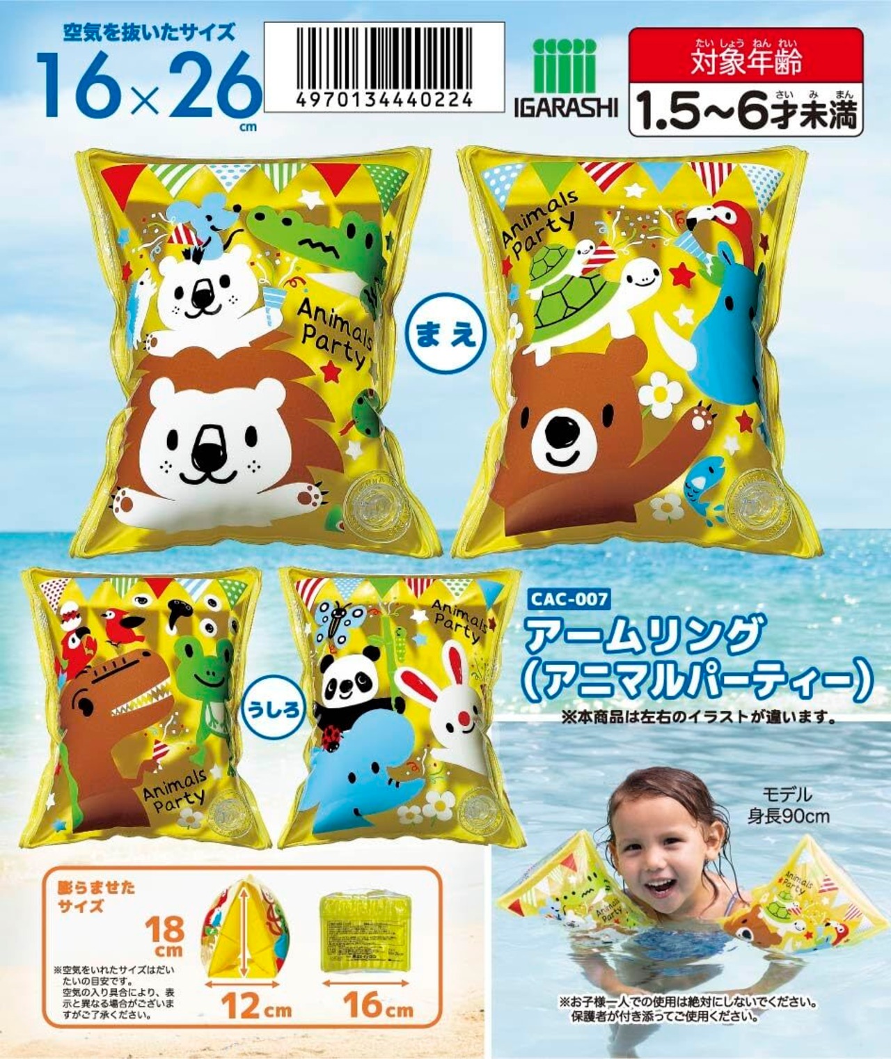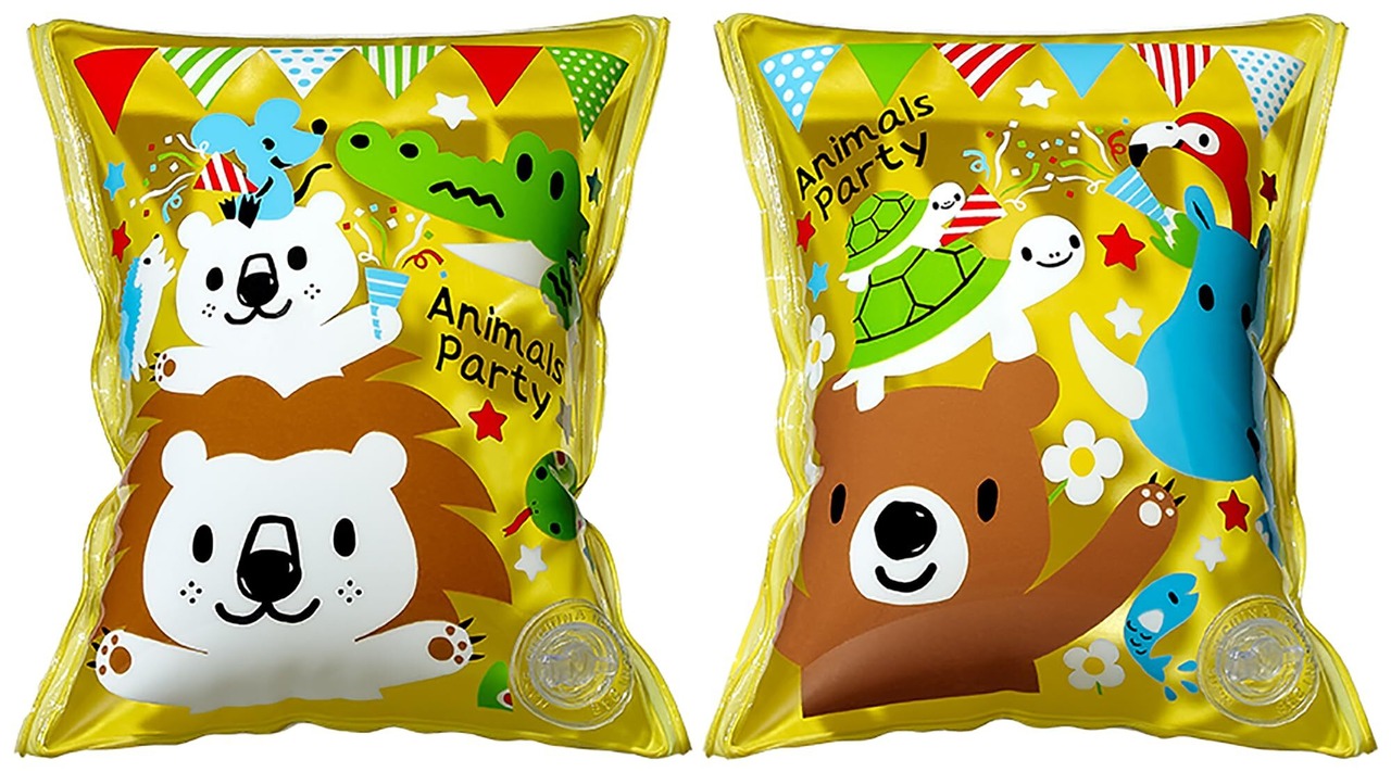 アームリングはお子様の両腕の付け根に装着することで肩から上、つまり頭が沈まないようにする為の浮具です。水泳の練習やレジャーでの溺れ防止にお使い頂けます。動物柄の可愛いデザインで、右と左で異なった絵柄になっています。