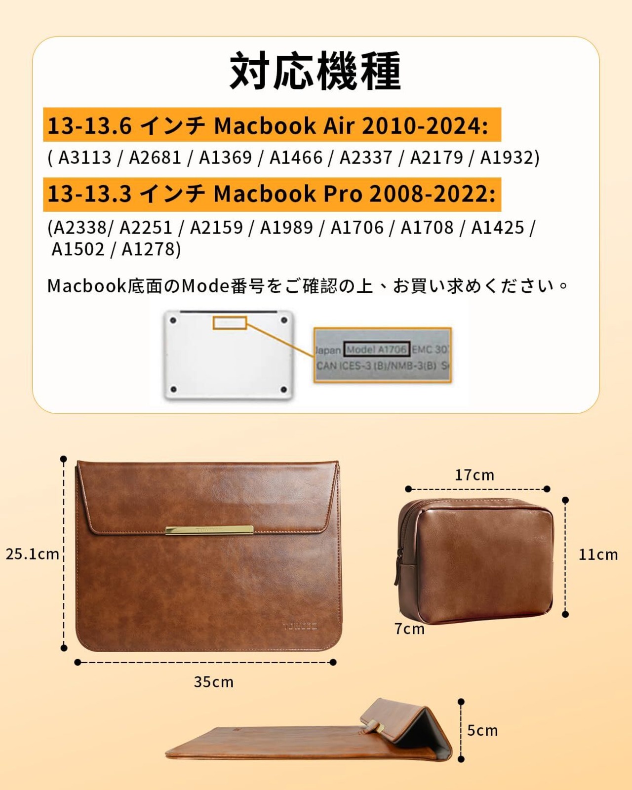 【対応機種】市販された13インチから14インチのパソコンに対応可能。13-13.6 インチ Macbook Air 2010-2024 M1 / M2 /M3 チップス: (A3113 / A2681 / A1369 / A1466 / A2337 / A2179 / A1932); @13-14インチ Macbook Pro 2008-2024 M1/ M2/ M3チップス: (A2159 / A1989 / A1425 / A1502 / A1278 / A1706 / A1708 / A2251 / A2338 / A2442/ A2918 / A2992 / A2779) Macbook底面のMode番号をご確認の上お買い求めください。️ご注意:本製品は薄型のため、透明なプラスチックケースとの併用には適しません。