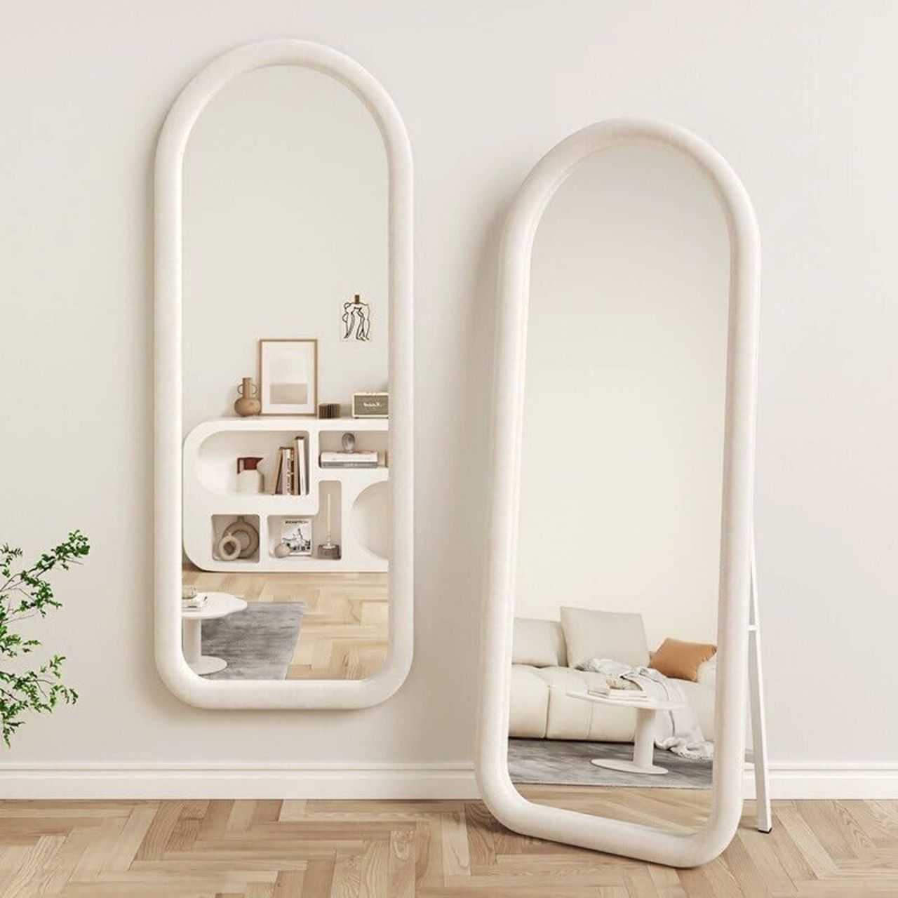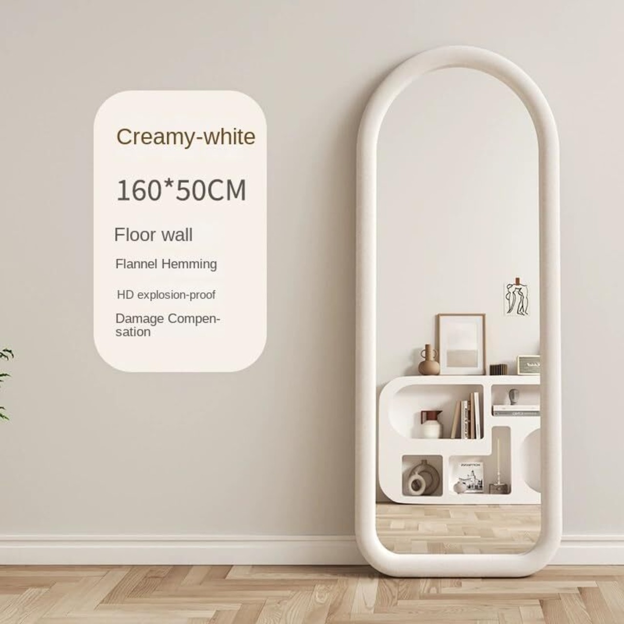 【おしゃれな 柔らかい外枠 全身鏡】幅50×高さ160cm、十分な高さです、足元まで全身をきちんと確認することができます。米白ですはシンプルでおしゃれ、波です のデザインも美しくて、お部屋のインテリアと相性がいい、和室でも洋室でもよく馴染んでくれます。