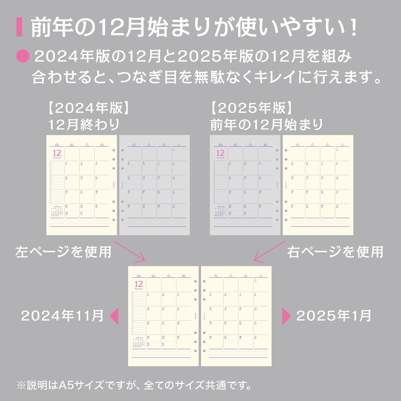 ラブリーフ システム手帳 リフィル 2025年 HB×WA5 マンスリー 月間ブロック (2024年 12月始まり) + LOVEドット方眼 SDHB002