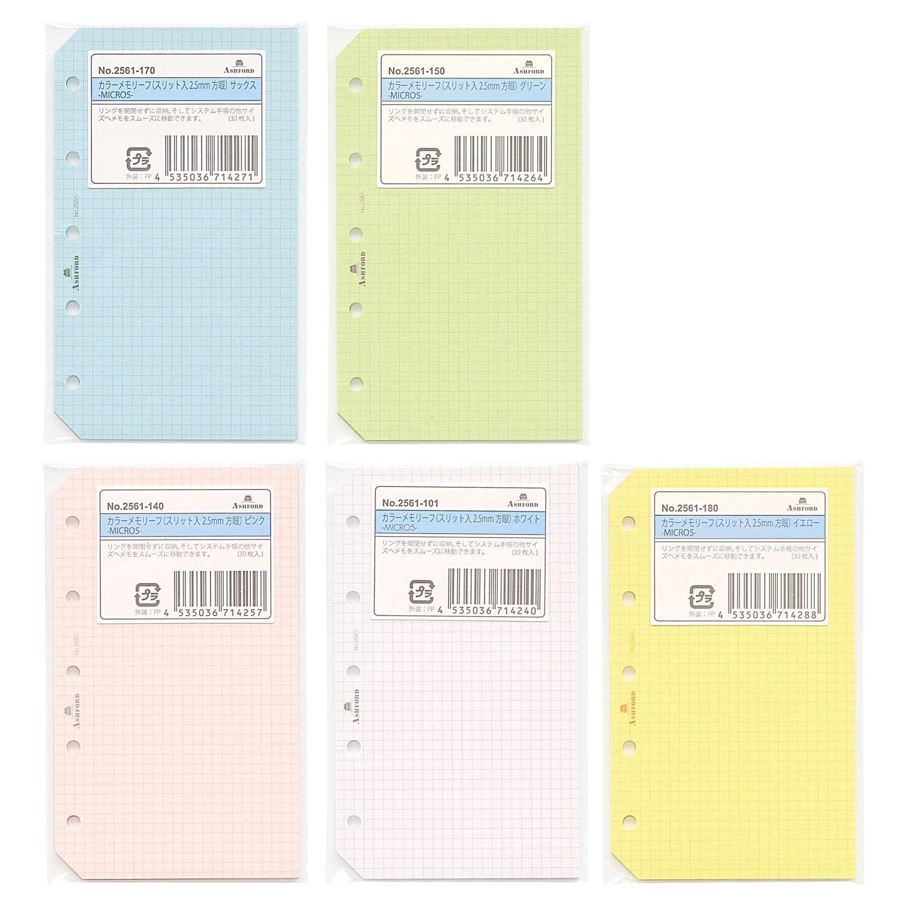 ミニ5穴サイズ カラーメモリーフ 2.5mm 方眼 30枚【グリーン】 システム手帳リフィル 256