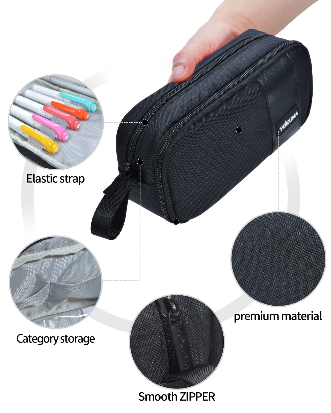 YOKUMA ペンケース 筆箱 ポーチ 透明な窓 クリア ペンポーチ おしゃれ シンプル 大容量 多機能 大人 高校生 中学生 男の子 女の子 大学生 小学生 子供用 (ブラック)