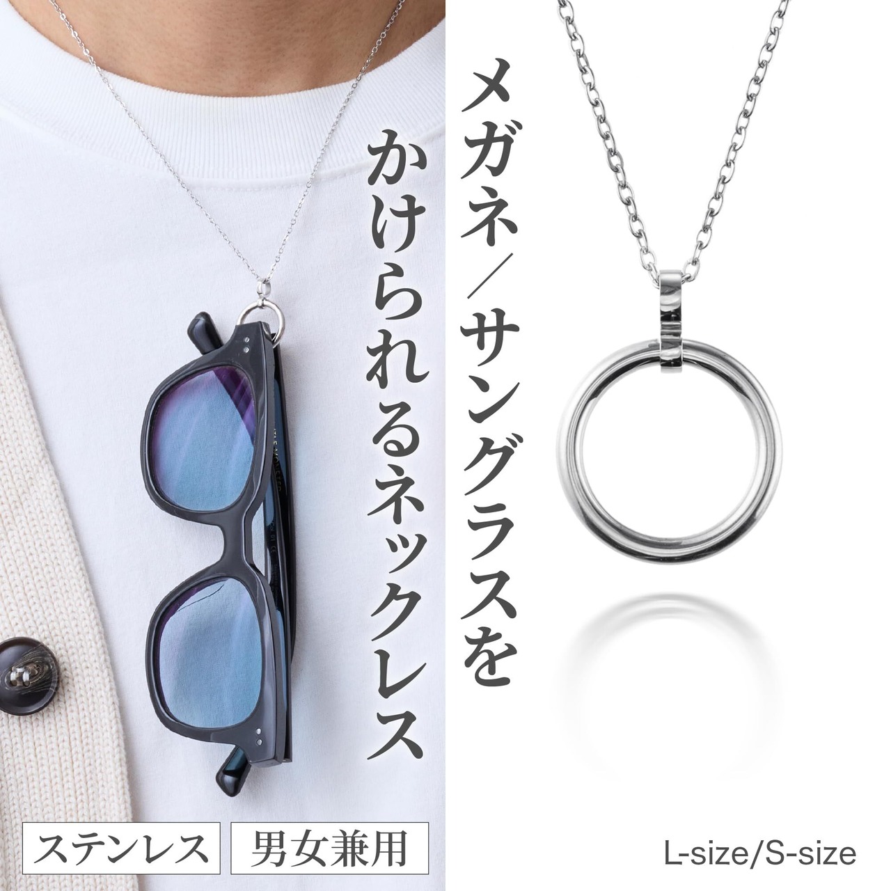【Puente】リングネックレス サングラスホルダー メガネホルダー メンズ レディース リング サングラス メガネ ステンレス シルバー ゴールド 45cm ~ 50cm