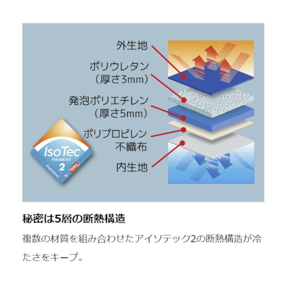 冷たいものをしっかりと冷やしたまま持ち運ぶアイソテック採用スポーツやアウトドアなどさまざまな用途に使える便利なクーラー。アイソテック2の5層断熱構造の高い保冷力が冷たさと鮮度を運びます。■容量:5L■サイズ: ( 約 ) 幅/25.5cm×奥行/16cm×高さ/20cm ■重量: ( 約 ) 0.2kg■素材:外生地/ポリエステル ( 表面ポリウレタンコーティング )内生地/PEVAクッション ( 断熱材 ) /ポリウレタン、発泡ポリエチレン、ポリプロピレン不織布■原産国:中国