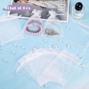 GeeRic 50枚 オーガンジー 巾着袋 10x15cm ギフトバッグ ラッピング袋 透明 プレゼント用 小分け袋 無地 香り袋 サシェ袋 結婚式 パーティー 誕生日 バレンタイン 母の日 父の日クリスマス用 ホワイト