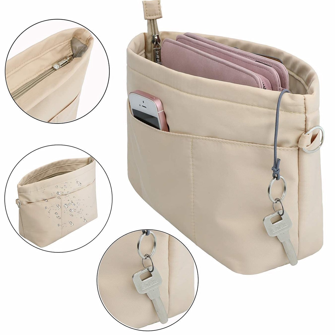【良い生地!】ナイロンの生地を採用しました。撥水性能があり、お手入れも簡単です。丈夫で耐摩損という特徴があり、バッグに入れて使うとバッグに傷つけない、バッグと完璧に結合します。