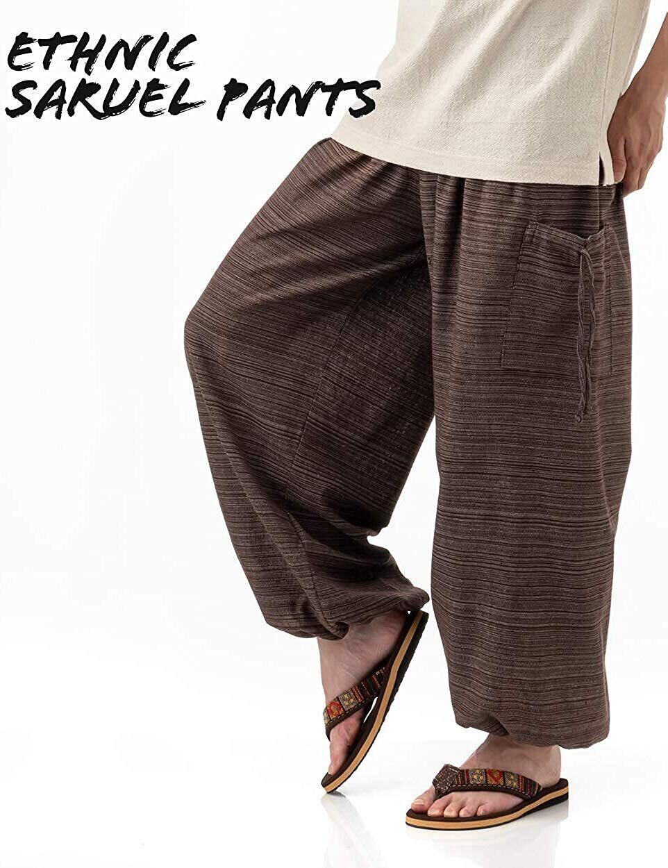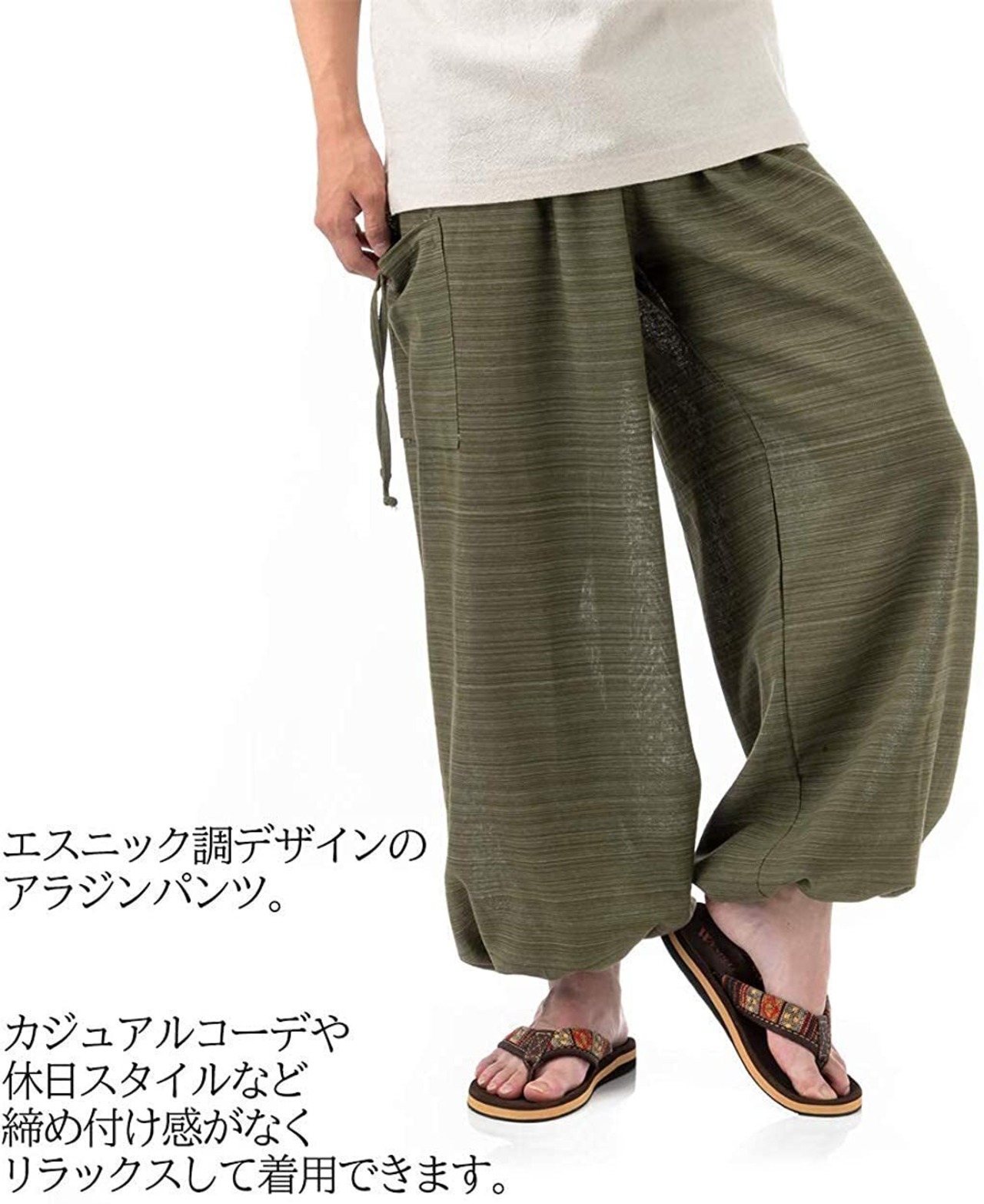 キャプテン・ケイ エスニック コットン サルエルパンツ ウエストゴム イージーパンツ メンズ 大きいサイズ タイパンツ ハーレムパンツ アラジン ヨガ ロング アジアン モスグリーン