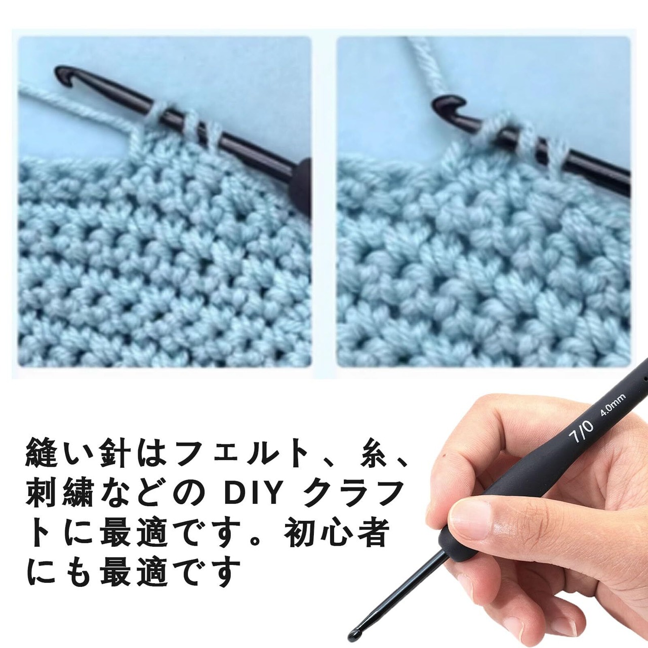 LOYELEY かぎ針 編み針 手芸 編み物 DIY 工具 レースかぎ針 セット ジャンボかぎ針 ステッチマーカー DIY 工具 ケース付き 小物付き セーター 帽子 ニット 手芸基本入門キッ (あおくろいろ)