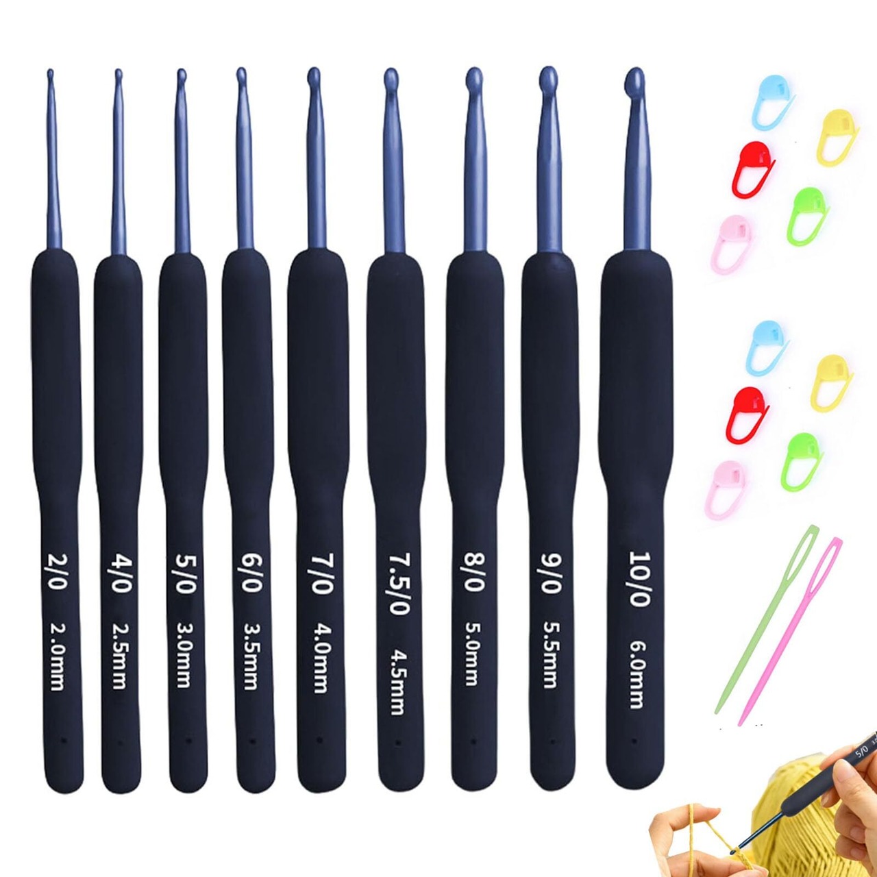 【細やかにデザインされたかぎ針】セットには、2.0mm、4.0mm、5.0mm、6.0mm、7.0mm、7.5mm、8.0mm、9.0mm、10.0mmの9種類のサイズがあります。各ハンドルにはサイズ表示があり、必要なかぎ針のサイズを選びやすくなっています。 滑らかなかぎ針は、毛糸を引き出しやすく、毛糸の抜けを防ぎ、よりスムーズに編むことができます。