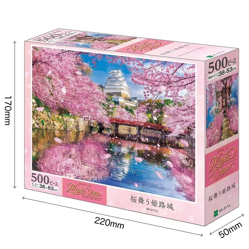 エポック社 500ピース ジグソーパズル 日本風景 ミスティックビュー 桜舞う姫路城 (38×53cm) 05-211s のり付き ヘラ付き 点数券付き EPOCH