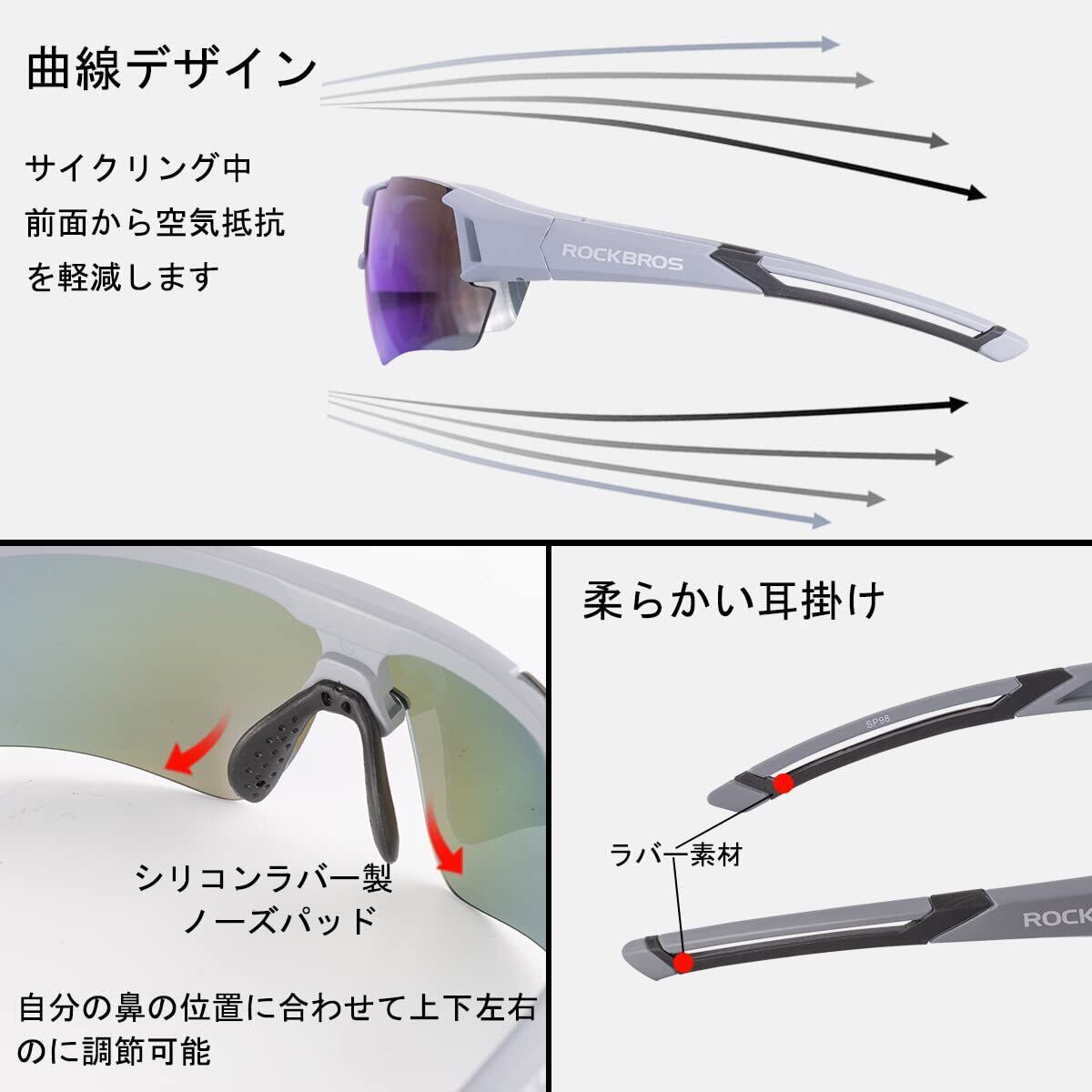 ROCKBROS 偏光サングラス 調光サングラス スポーツサングラス 偏光レンズ 変色レンズ UV400 紫外線カット 超軽量 ロードバイク サングラス スポーツ 度付き 自転車 釣り 運転用 野球 ゴルフ ランニング ドライブ 登山 メンズ