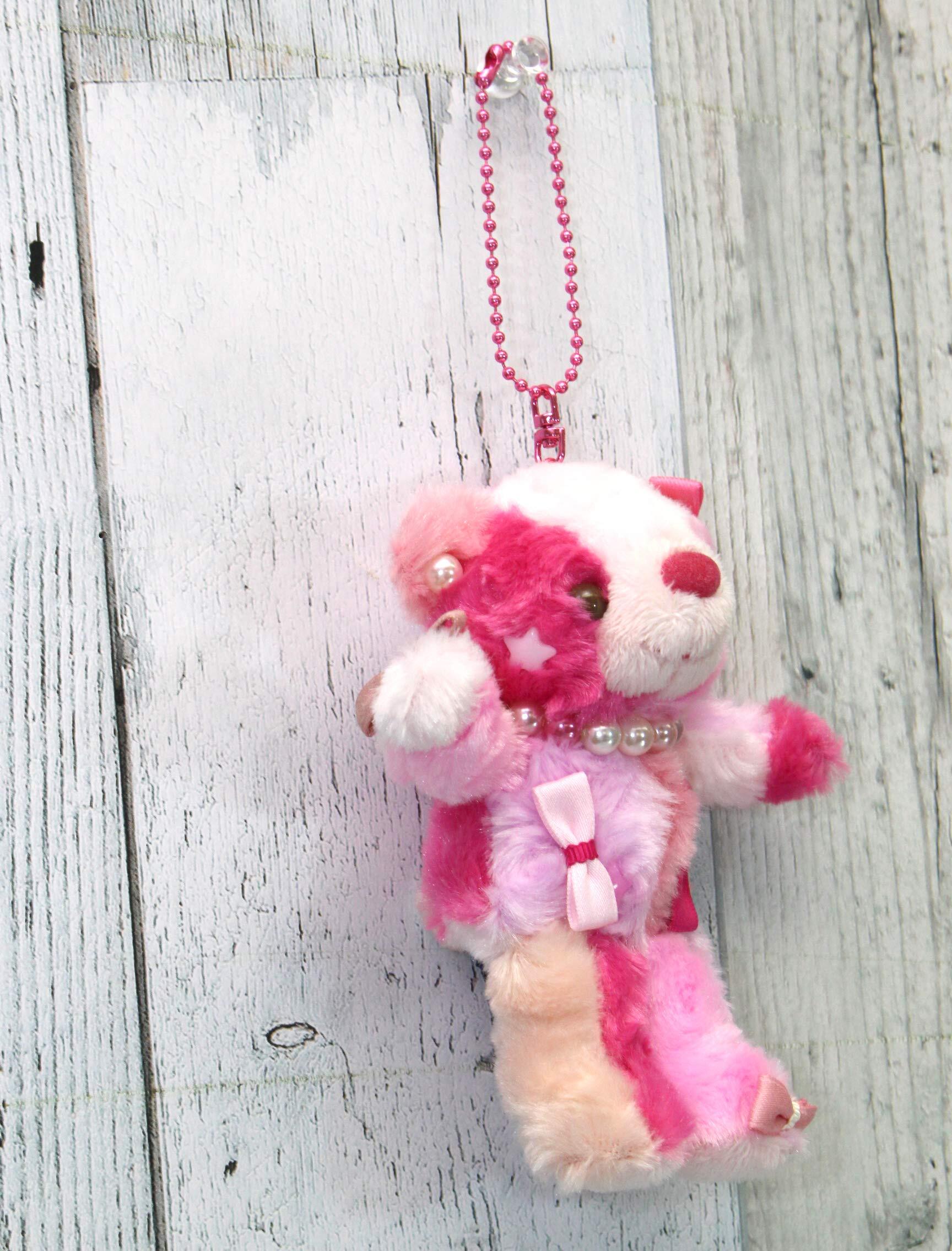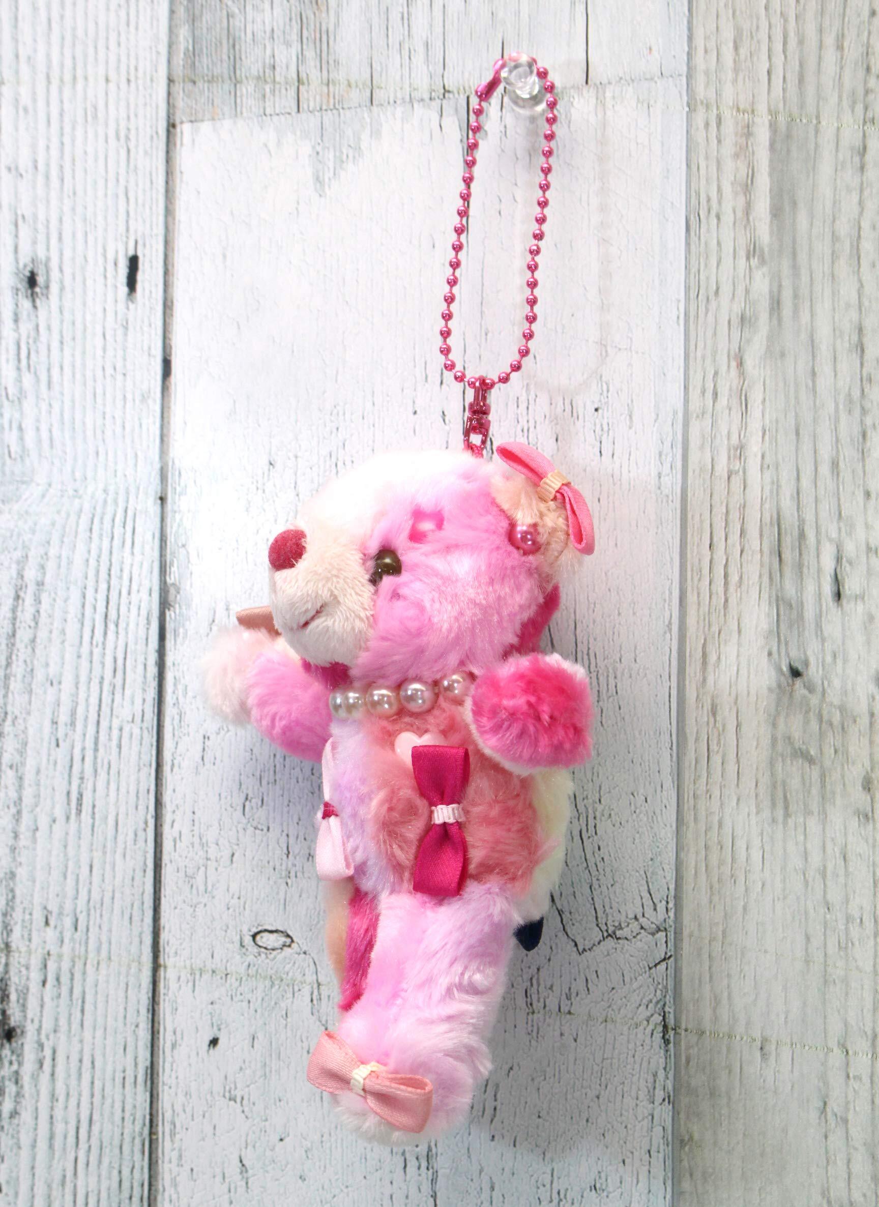原宿のカワイイ女の子たちに憧れたクマが自分も可愛くなりたい! と願い、気づけばこ~~んなにカラフルに! キーホルダーです。
