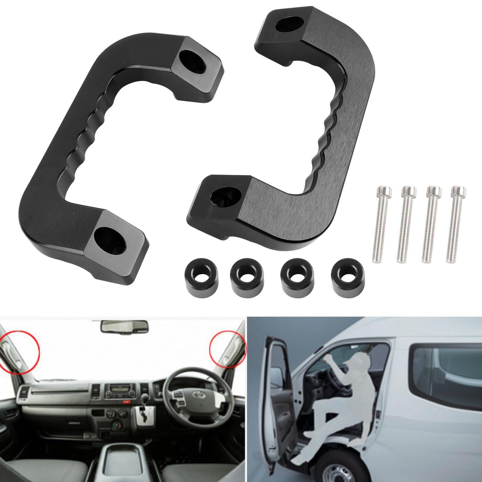 BAGARAATAN NV350 E26 キャラバン アルミ アシスト グリップ レッド 運転席 助手席 2P グラブ ハンドル 純正交換 タイプ 左右(ブラック)