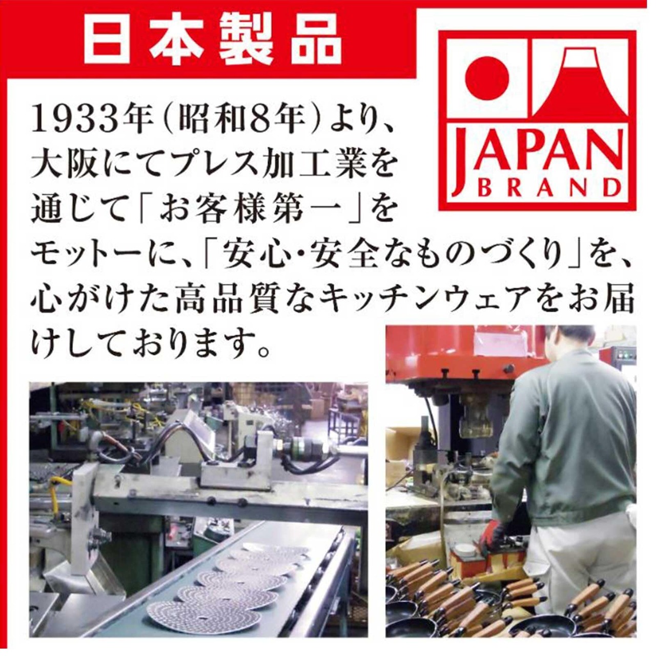 【サイズ】17.5×13.5×12.5㎝【重量】260g【材質】本体・蓋・中皿:鋼板(内面:ふっ素樹脂塗膜加工/外面:耐熱塗装)/ハンドル:フェノール樹脂/こし網:ステンレス鋼【内容量】1.0L【生産国】日本