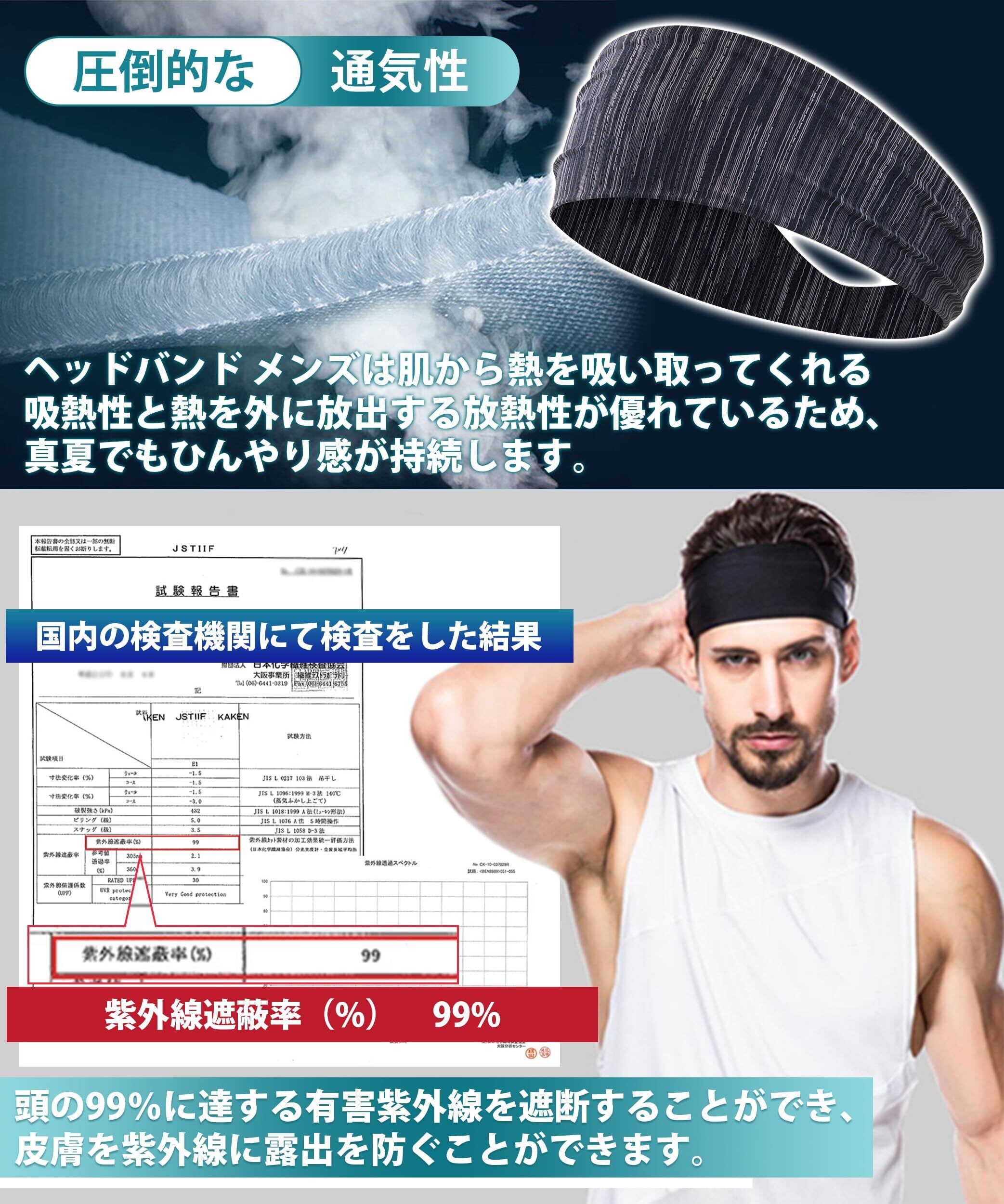 【改良冷感素材】 ヘッドバンド メンズ ヘッドバ 【熱気を逃す冷感構造・頭に程よくフィット】 ヘアターバン 汗止め スポーツ 洗顔 高弾力 吸汗速乾 ランニング ヨガ サイクリング 1/3本セット