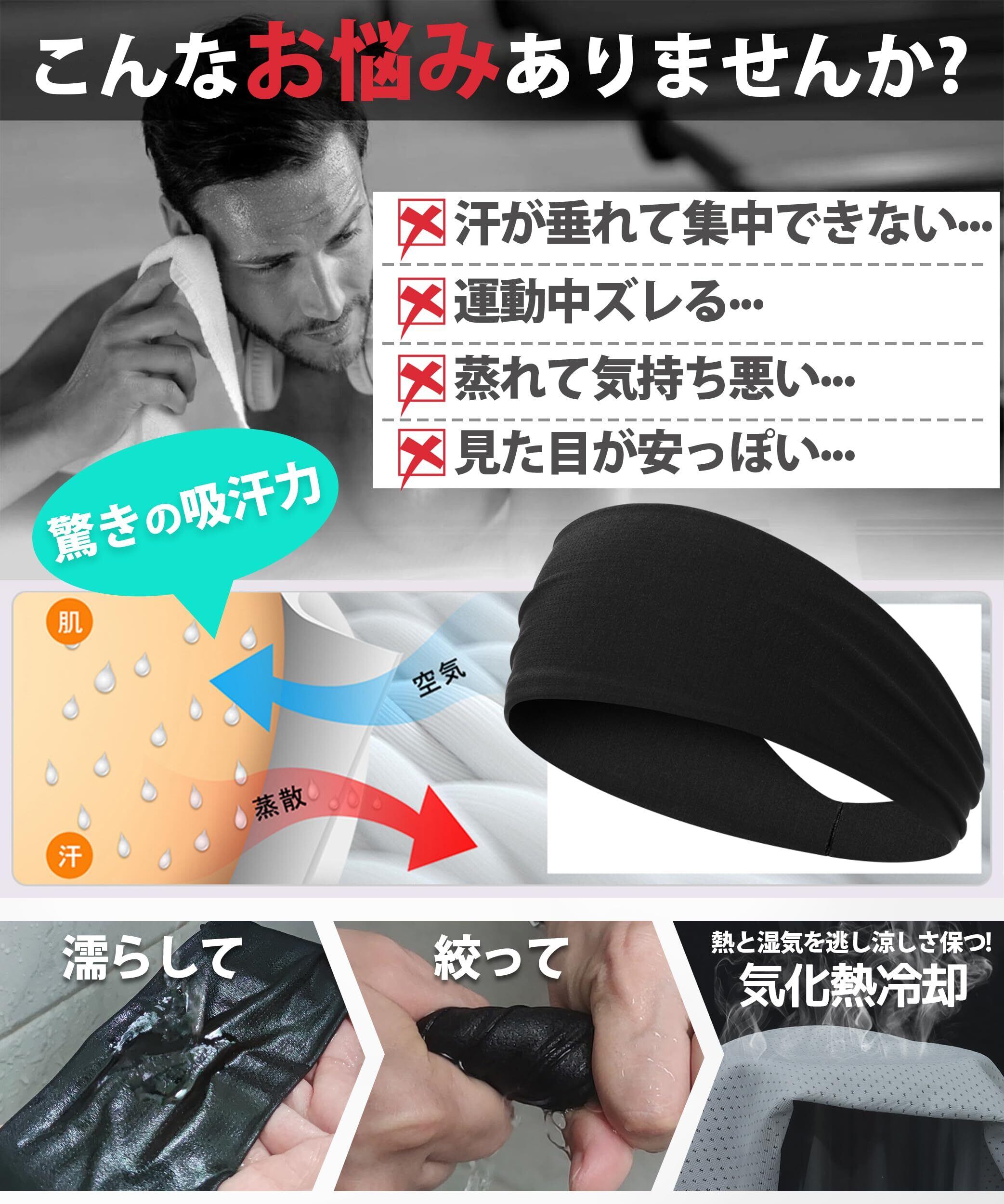 【熱気を逃す冷涼構造ヘッドバンド】夏、汗で濡れたヘッドバンドのベタベタ感にうんざりしていませんか? 当社のヘッドバンドは涼しい素材でできているので、暑い夏でも爽やかで快適です。こだわりの素材がどんどん熱を逃がします。だからいつでも頭はクール。 装着するたびに、肌をいたわり、涼しさを楽しむことができます。お肌にも優しい素材を使っており、その為、お肌が弱い方にも安心してご愛用頂いております。