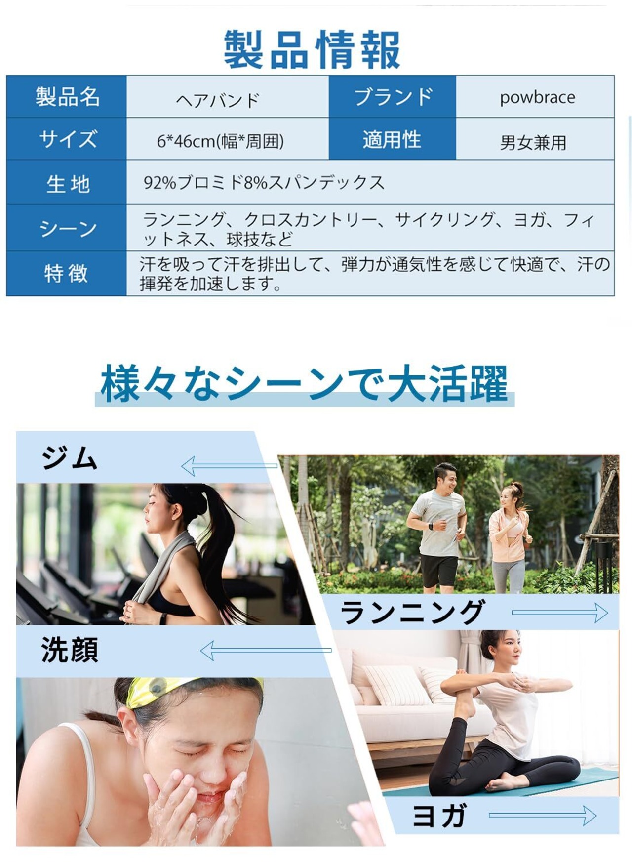 Powbrace ヘッドバンド ヘアバンド【最新強化版】【吸汗速乾・高弾力できつくない】スポーツ用 薄型 メンズ 伸縮性 通気性あり ランニング ヨガ ジム 筋トレ アスレチック 洗顔用 男女兼用…