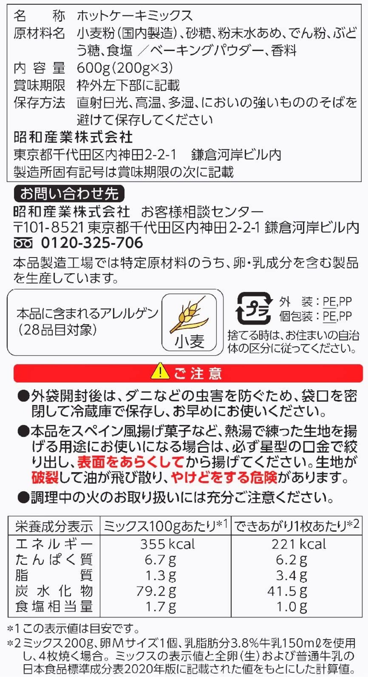 昭和 SHOWAホットケーキミックス600g 200g×3