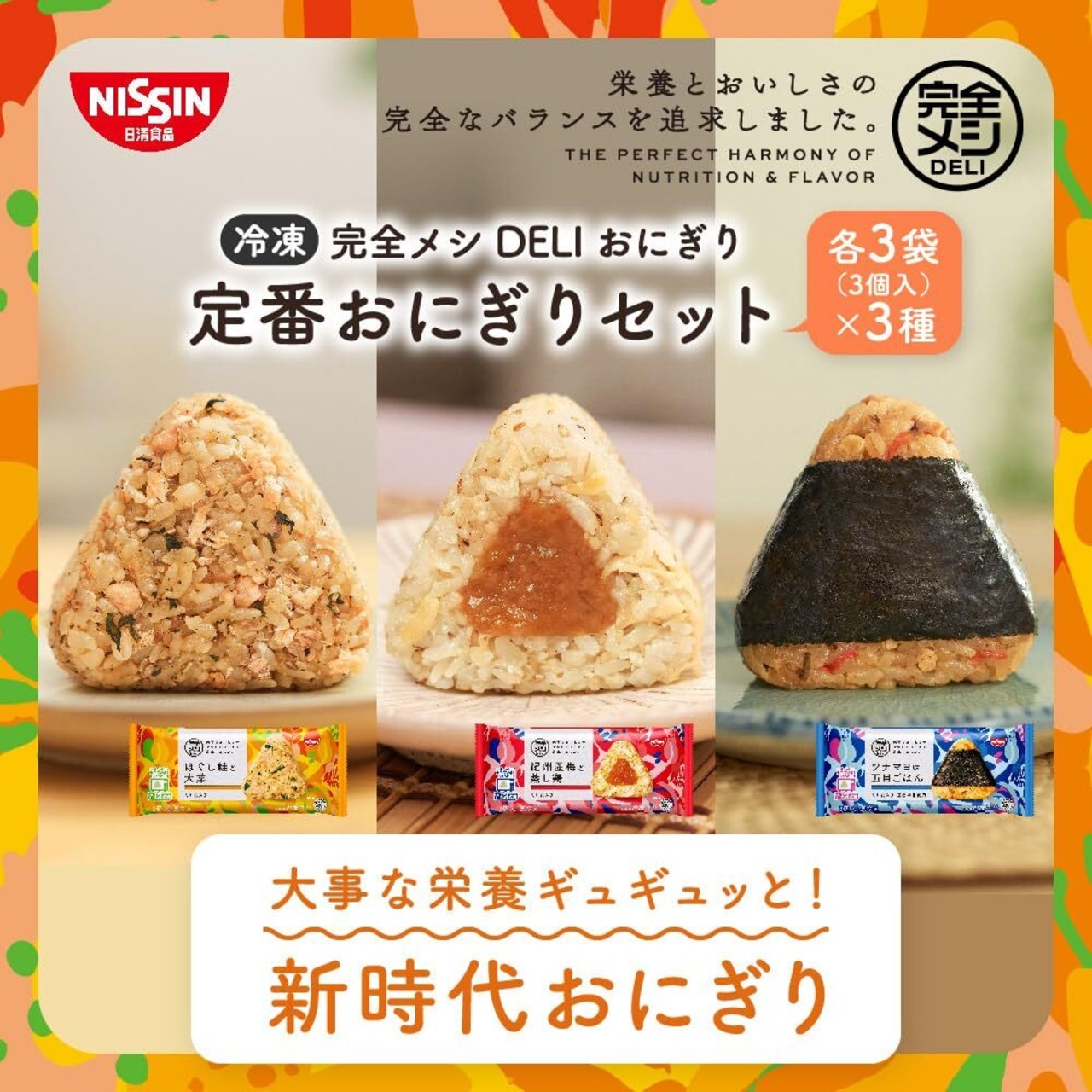 冷凍 完全メシ DELI 日清食品 おにぎり 冷凍おにぎり 定番おにぎりセット ほぐし鮭と大葉 紀州産梅と蒸し鶏 ツナマヨ味 五目ごはん 各3袋(3個入)× 3種