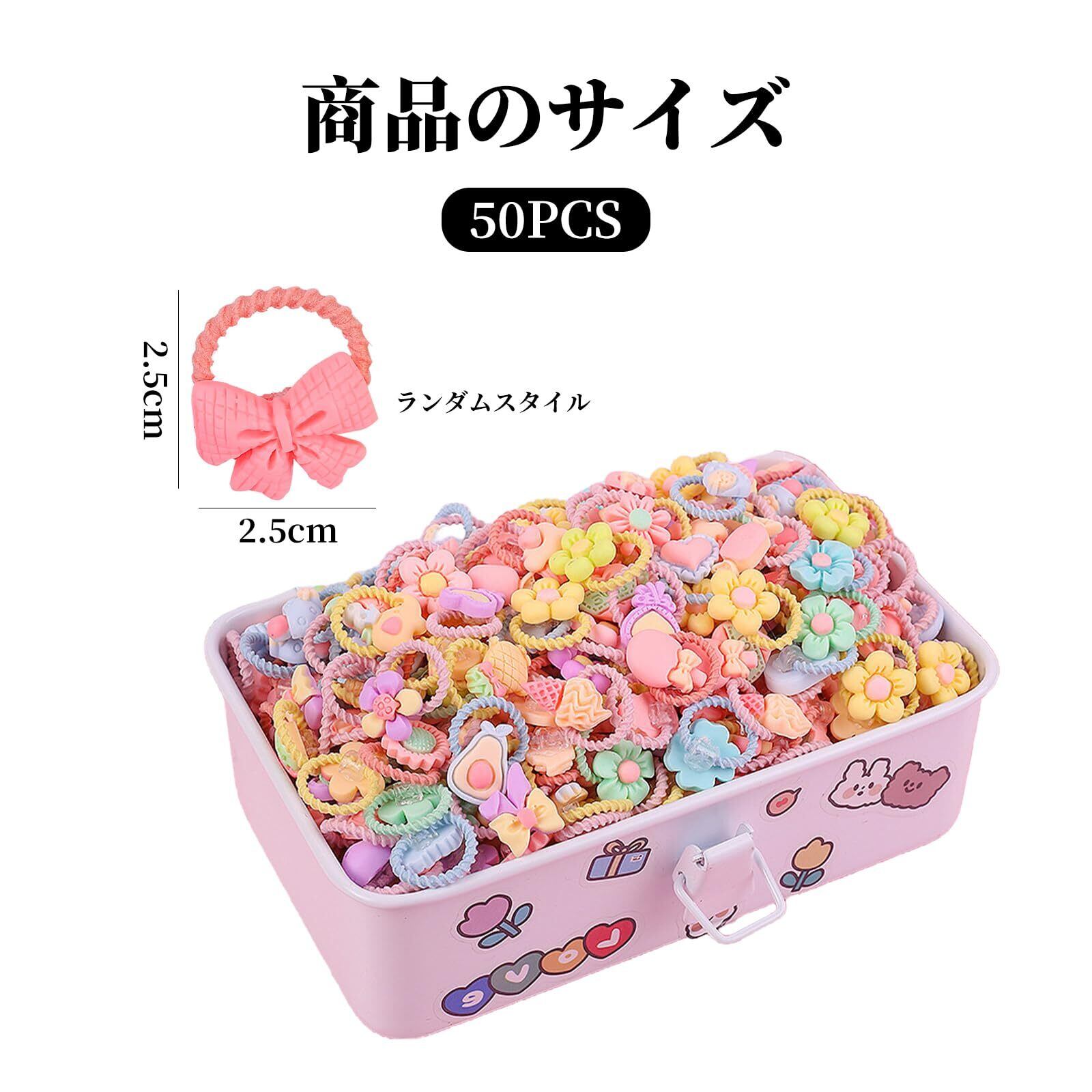 Liroyal ヘアゴム 子供 【50本セット】こども ヘアゴム カラフル おしゃれ 可愛い 子供 髪ゴム 子ども ゴム 髪 絡まない 痛くない ヘアアクセサリー 果物 花 フラワー 動物 女の子 ベビー 赤ちゃん シンプル ギフト 幼稚園 保育園