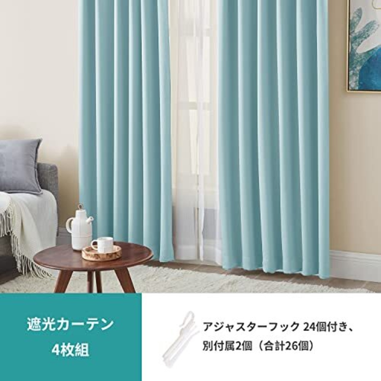 Hansleep カーテン 1級遮光 4枚組 スカイブルー 幅100cm×丈178cm UVカット 断熱 防寒 防音 省エネ 厚手 無地 おしゃれ カーテンセット 洗える 寝室 リビング用 (ドレープカーテン2枚・レースカーテン2枚)