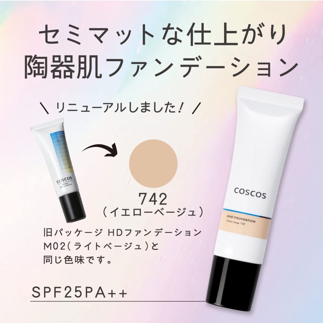 COSCOS UHDファンデーション 742 イエローベージュ オールインワン リキッド ファンデーション イエベ肌 韓国肌 陶器肌カバー力 毛穴レス ウォータープルーフ CICA成分配合 コスプレメイク コスコス (イエローベージュ)