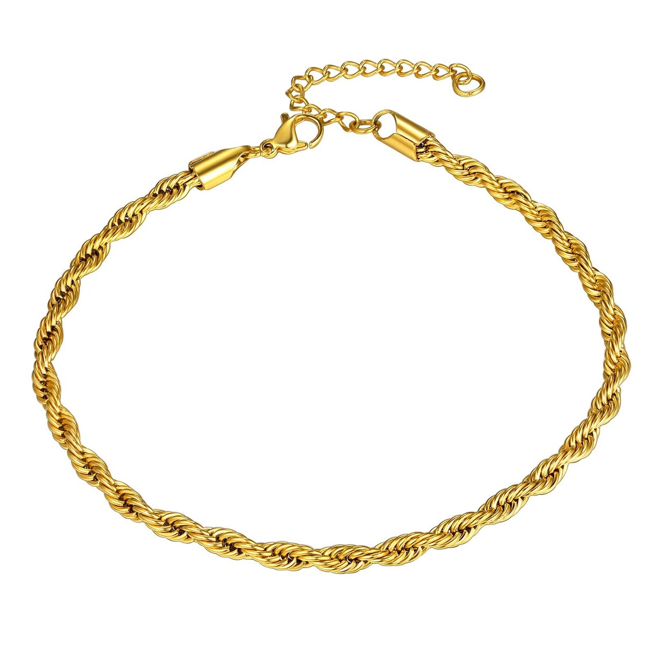 【ゴールドアンクレット】サージカルステンレスの表面に18金ゴールドコーティングが施されております。金属アレルギーが酷い方にはシルバー色のご使用をお勧めいたします。