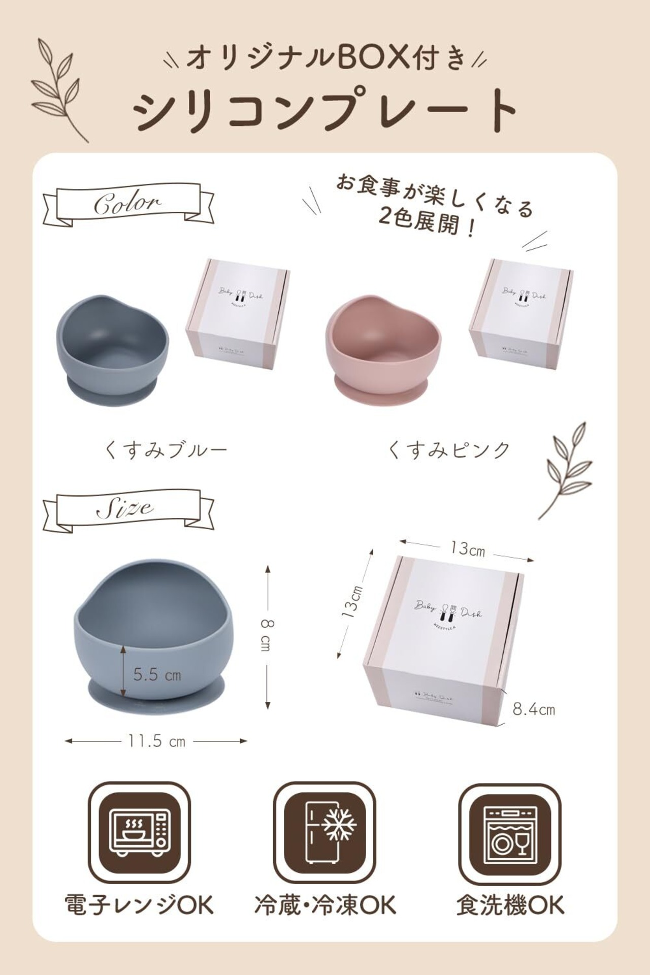 【ママの嬉しいポイントが沢山!】①吸盤付きでひっくり返しにくい! テーブルにしっかりくっつくから、投げたりひっくり返したりしても安心。床に落ちる心配も減り、食事中のストレスを軽減します。②シリコン製で安心安全! 柔らかく、割れにくいシリコン素材だから、赤ちゃんが舐めたり噛んだりしても安心です。BPAフリーで、ママも安心してお使いいただけます。③食洗機・電子レンジ・冷凍庫対応! お手入れ簡単で、毎日の食事作りをサポートします。忙しいママでも、パパッと洗えて助かります。