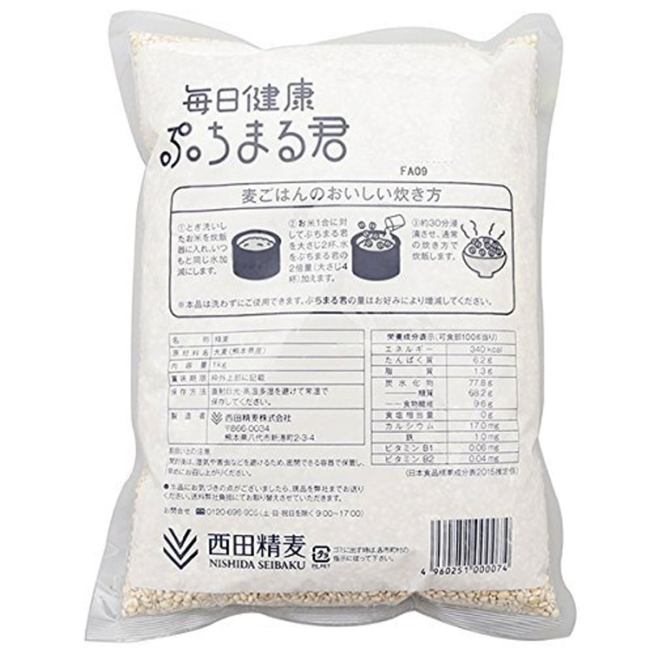 【3袋セット】西田精麦 毎日健康 ぷちまる君 ( 1kg )×3袋 熊本県産 大麦100%使用
