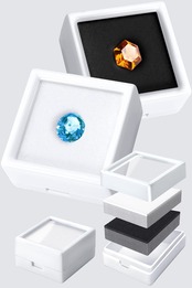 業界初 白黒 2段クッション : 様々なルースの収納にこれ一つ。白色ケースで黒色クッションや黒色ケースで白色クッションなど、宝石の色味に合わせてルースケース内のクッションの色をカスタマイズ可能です。