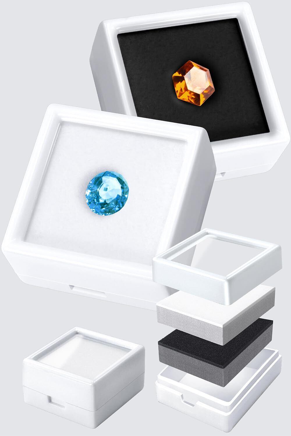 ETLIFE ルースケース 3cm 白 10個【 白黒 2段クッション 】 プラケース 天然石 宝石箱 裸石 宝石 ルース 収納 ジュエリーケース ディスプレイケース 小物入れ 標本箱 (10個セット)