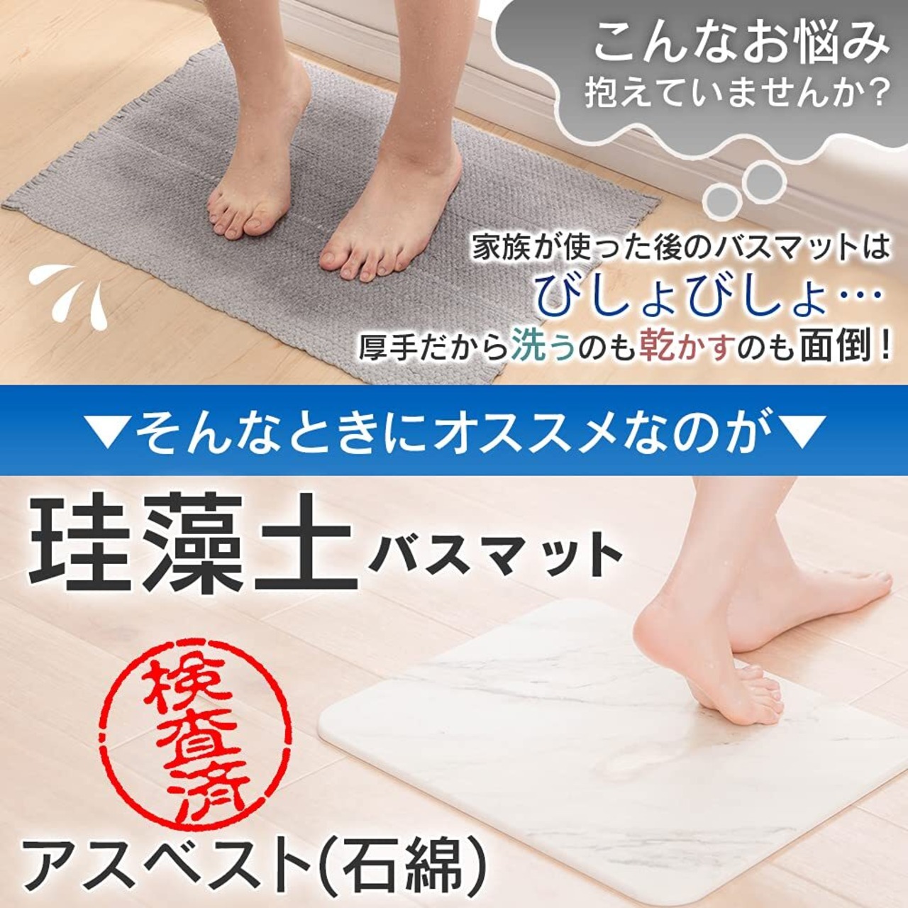 吸水吸湿に優れた珪藻土が、お風呂上がりの水分をしっかり吸収。乾いたあとはサラサラ。