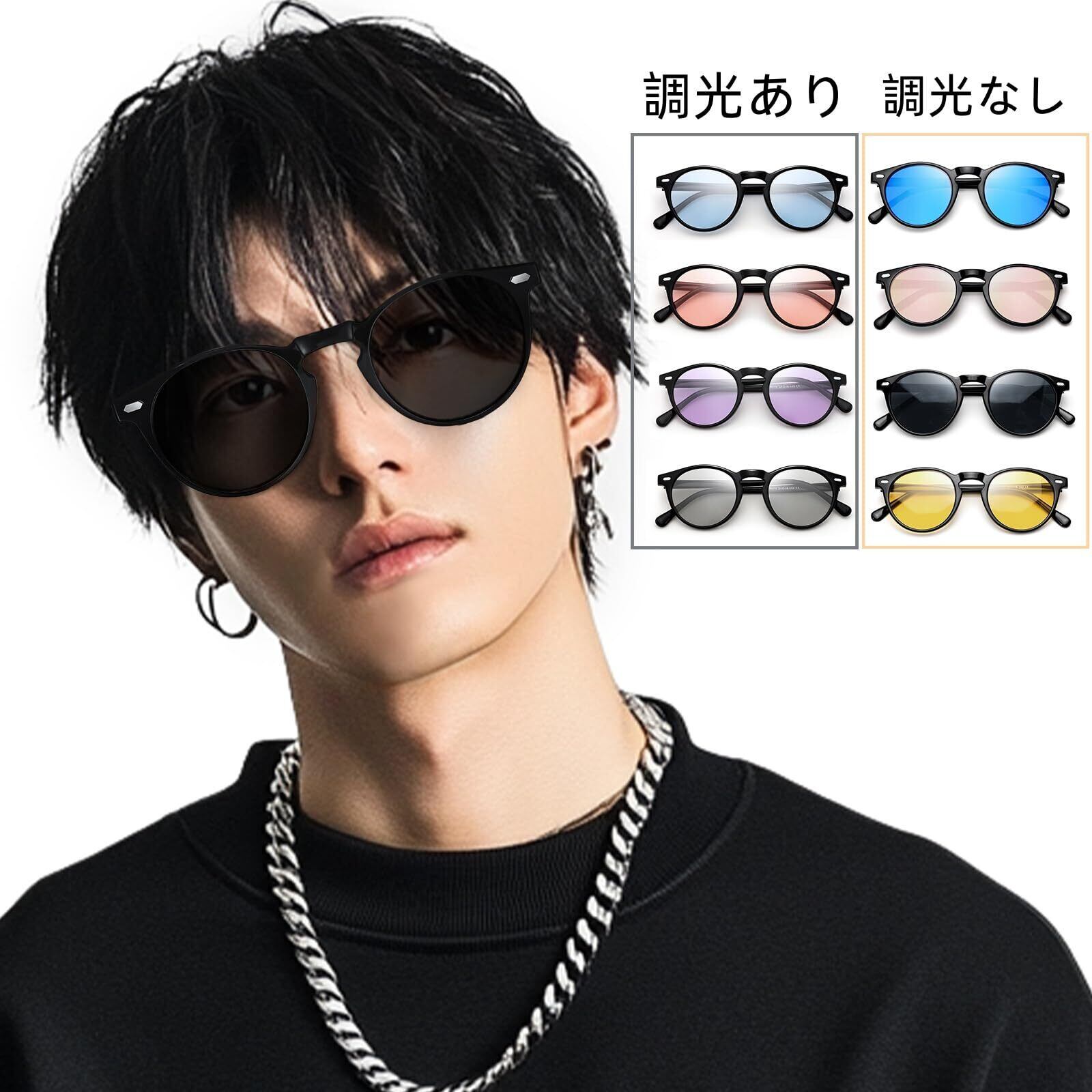 Feisedy サングラス メンズ 調光 変色 偏光サングラス 屋外サングラス UV400保護 紫外線カット レディース サングラス 釣り 運転 超軽量カラーレンズ(調光·変色レンズ) 丸めがね B1137