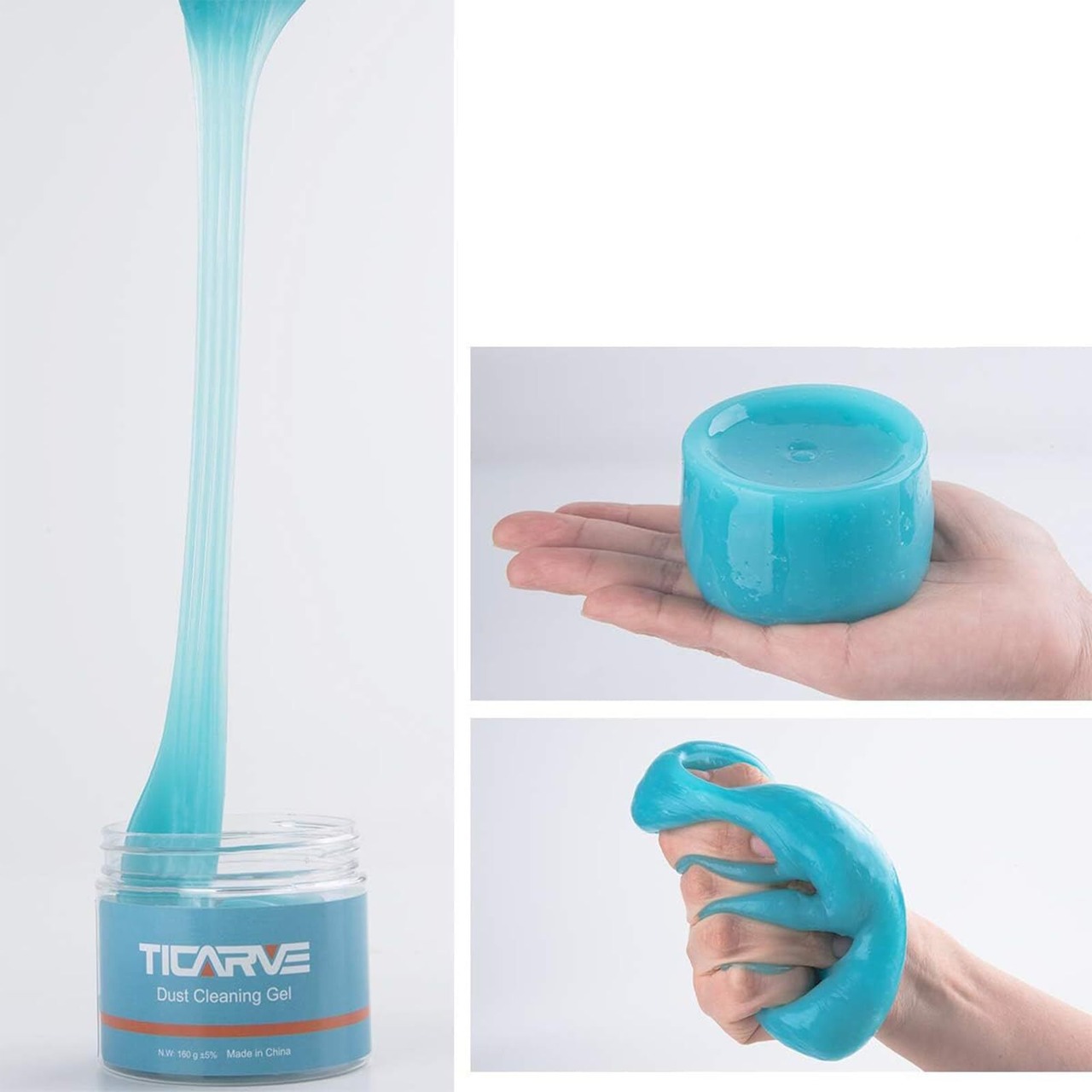 TICARVE ジェルクリーナー 車内清掃 簡単に隙間のホコリ取り キーボードの掃除 スライム 細かいゴミを強吸着 手べたつかず 繰り返し使える車内掃除スライム カー用品便利グッズ 粘着クリーナー 160g ブルー