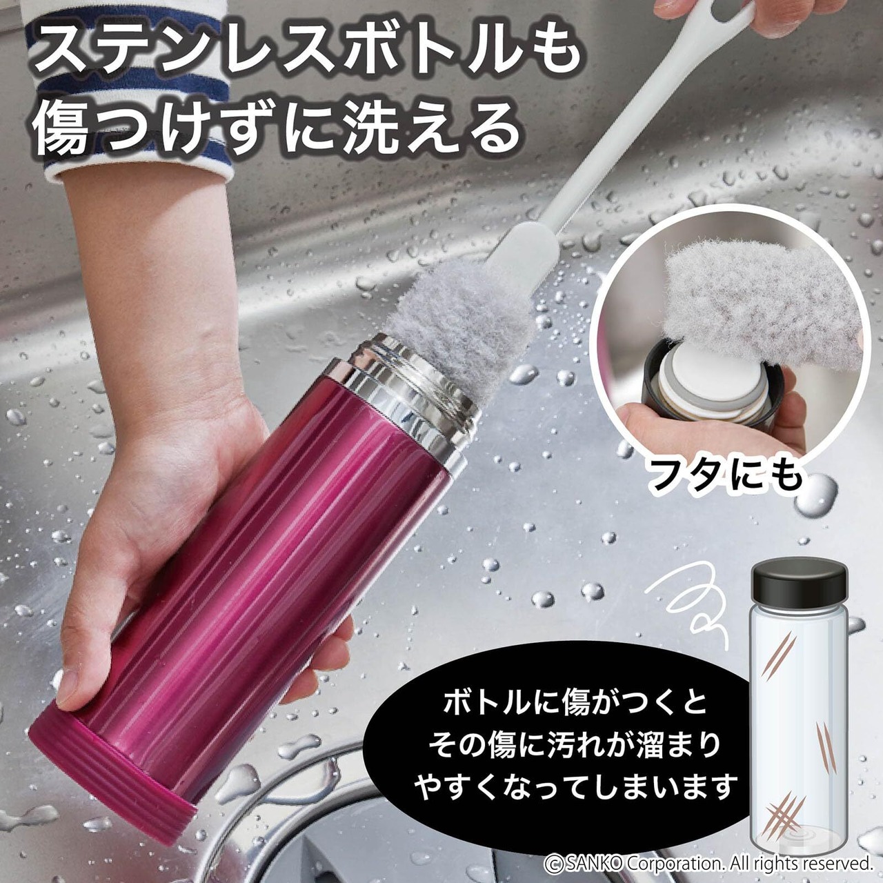 【日本製】 サンコー スポンジ ブラシ ボトル洗い タンブラー用 マグボトル洗い ミニボトル 水筒 哺乳瓶 水だけでも汚れが落とせる特殊繊維 アフロ 抗菌加工 びっくりフレッシュ グレー BB-04