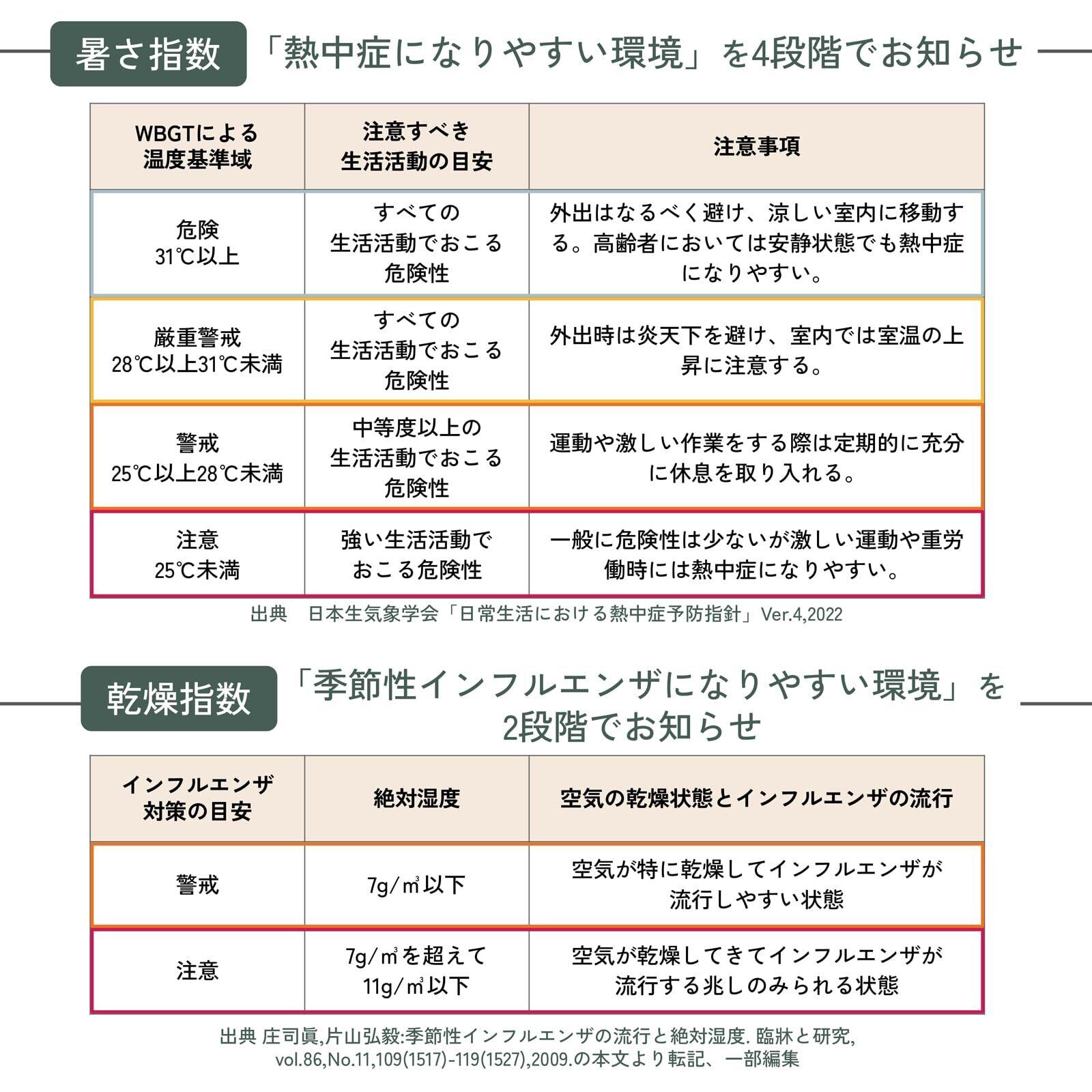 暑さ指数と乾燥指数で熱中症/季節性インフルエンザになりやすい室内環境をお知らせ