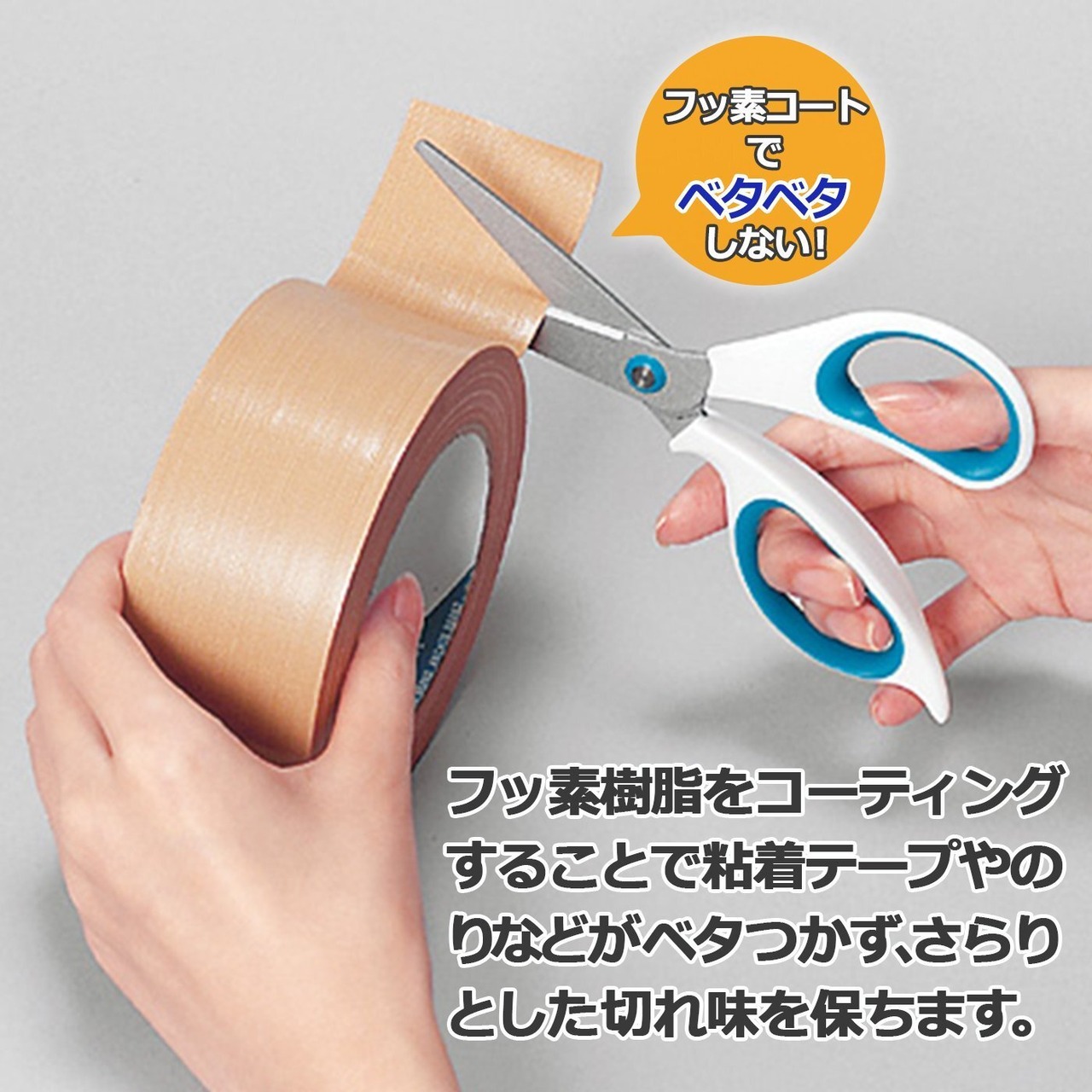 1.フッ素加工でテープを切ってもべたつきにくい