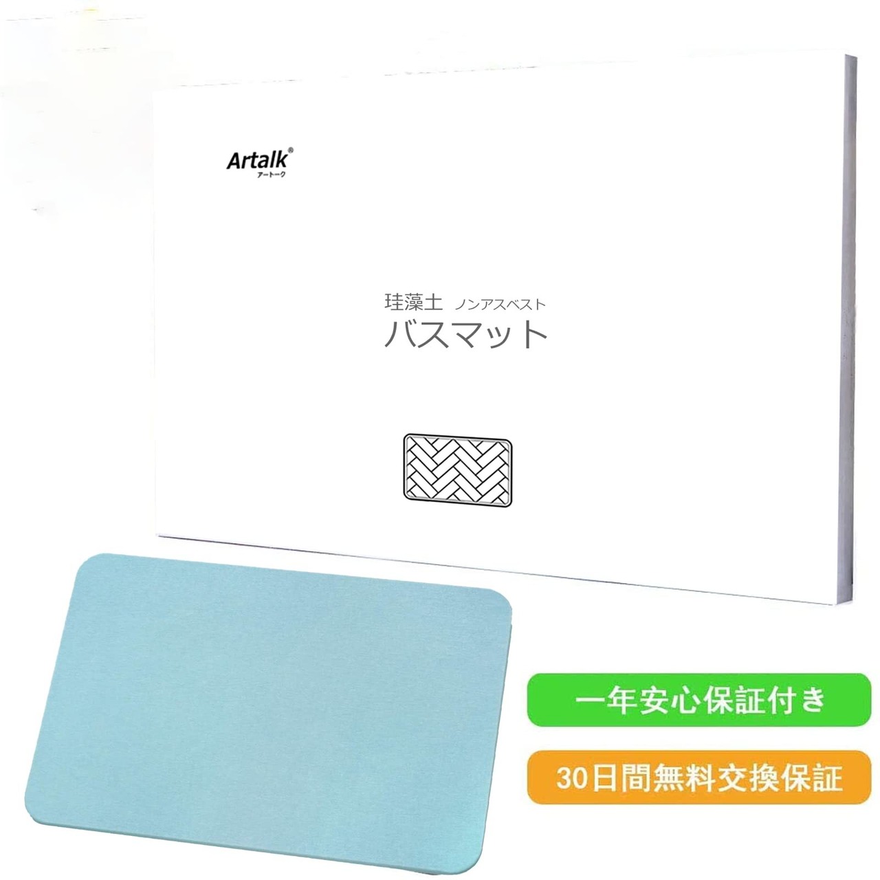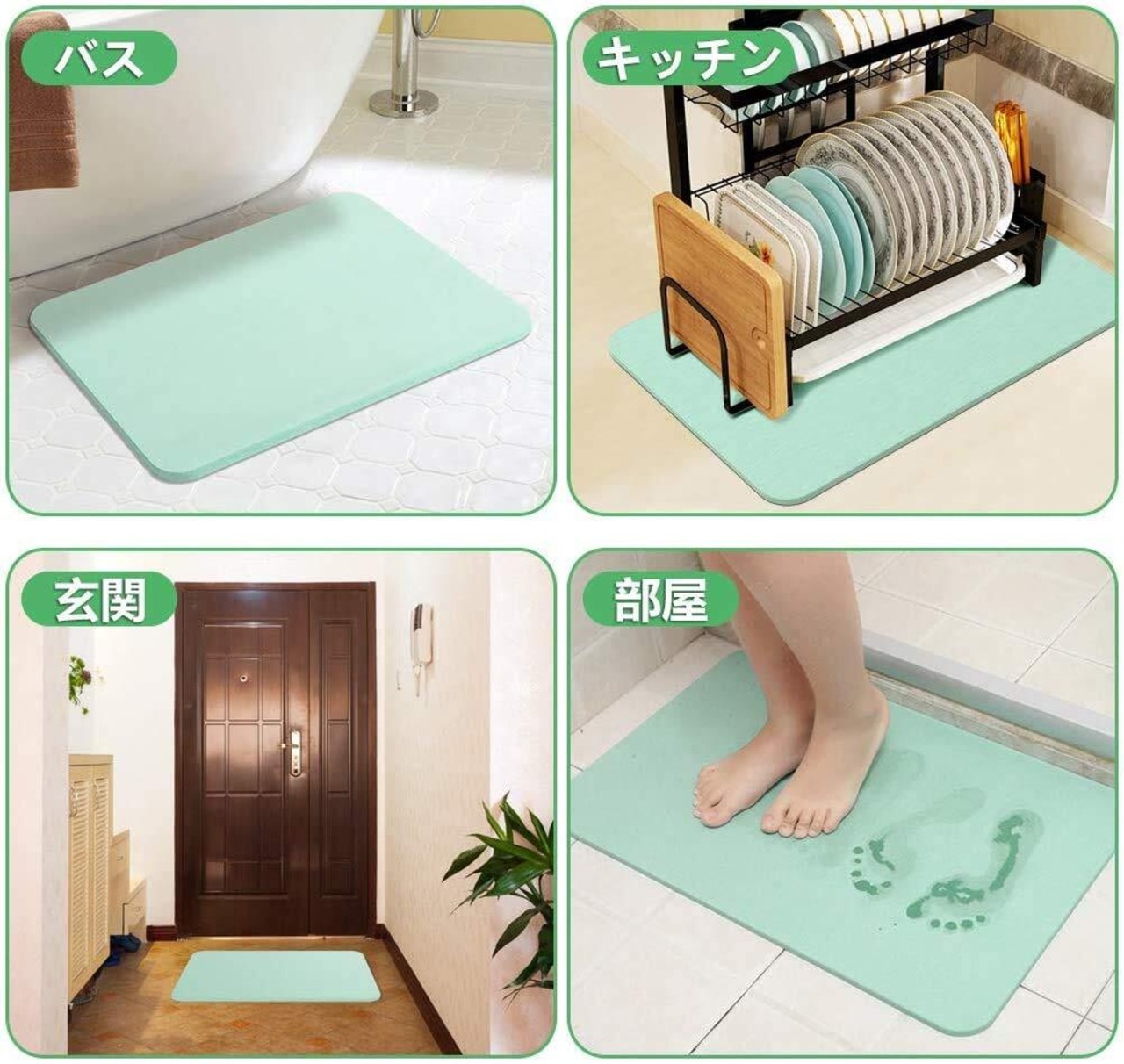 ノンアスベスト 国際標準の認証取得済み Artalk 珪藻土バスマット バスマット お風呂マット 珪藻土マット 安全認証済み マット 足ふきマット キッチンマット 速乾 調湿 抗菌 防カビ 防ダニ 消臭 滑り止め付き 洗濯不要 バスルーム 浴室 洗面所 キッチン (グリーン S:40×30cm)