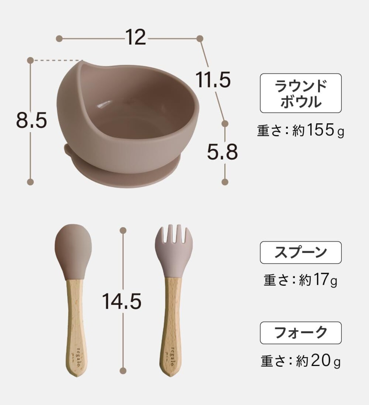 regalo ベビー食器 ラウンドボウルセット 食品衛生検査済み 離乳食 電子レンジOK シリコン 食洗機対応 吸盤付き (コーヒー)