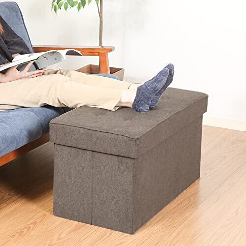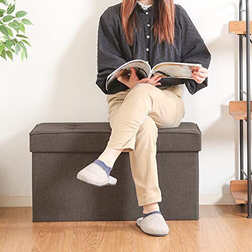 不二貿易 収納ベンチ 折りたたみ 幅76×奥行38×高さ40cm ブラウン オットマン 収納ボックス 耐荷重150kg ファブリック ディノ 85857